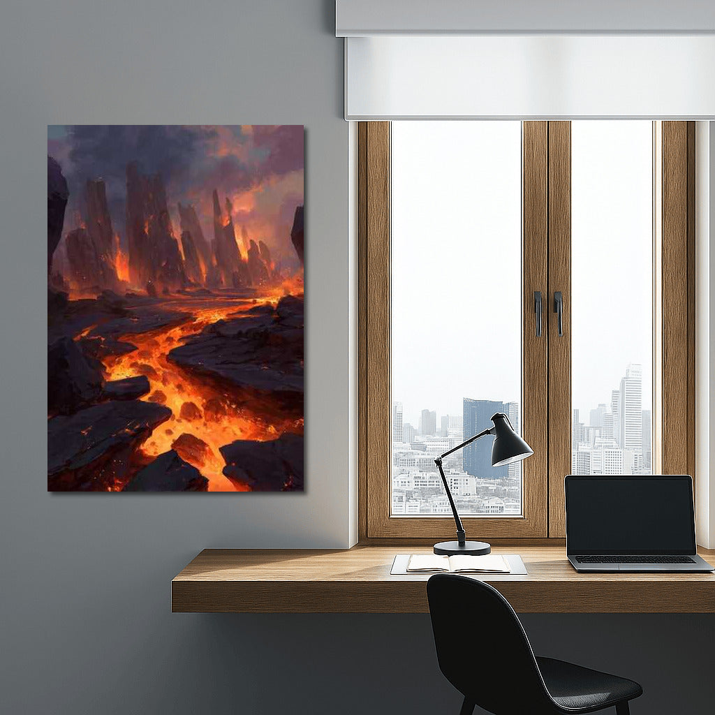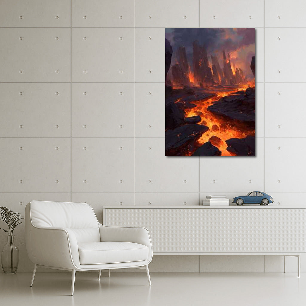 Feel the power of nature with this breathtaking painting: fiery volcanoes and magma create epic wall art. See more from the collection: Nature & Landscapes Art