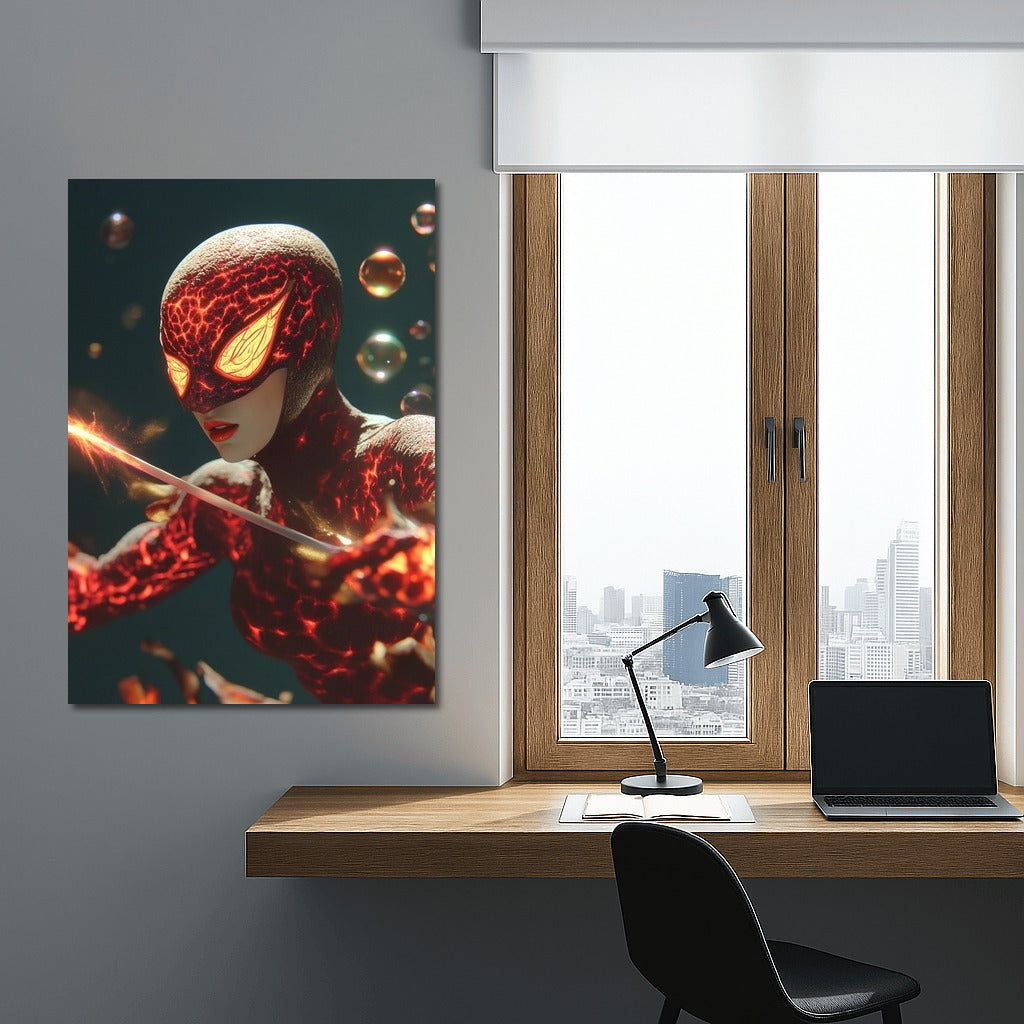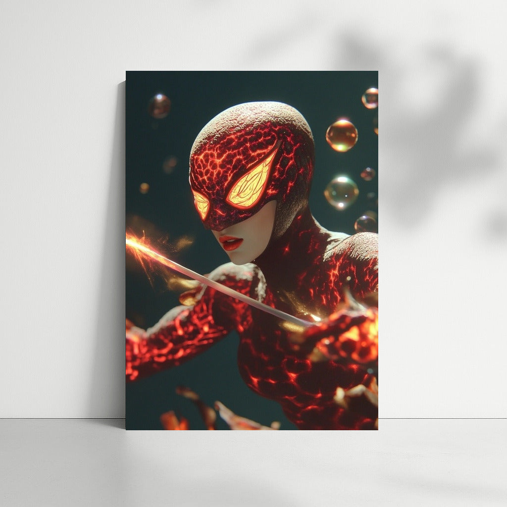 Magical fantasy world: fiery hero in battle! Vivid poster for your wall art. Let the walls come alive with history! See more from the collection: Mixed Wall Art