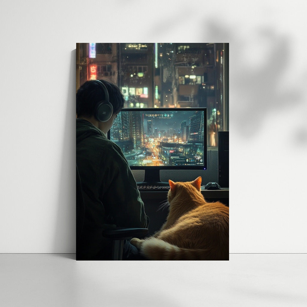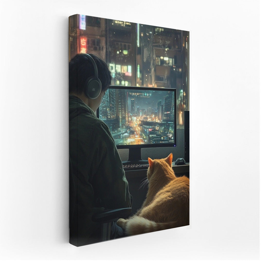Contemporary painting: mysterious night, city lights, cozy mood. Wall art for passionate dreamers. See more from the collection: Mixed Wall Art