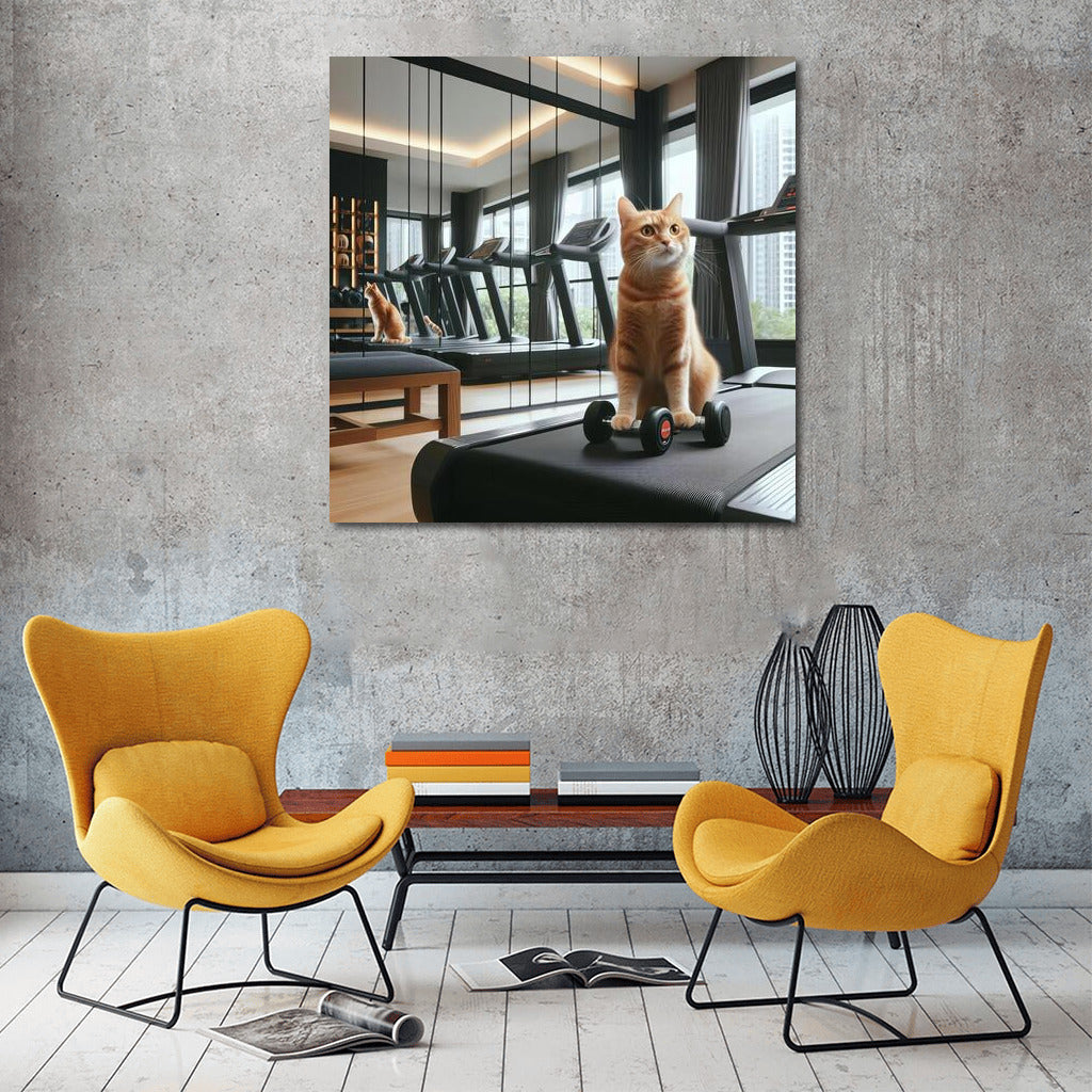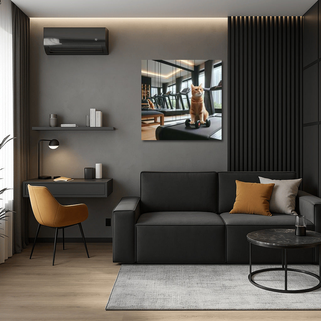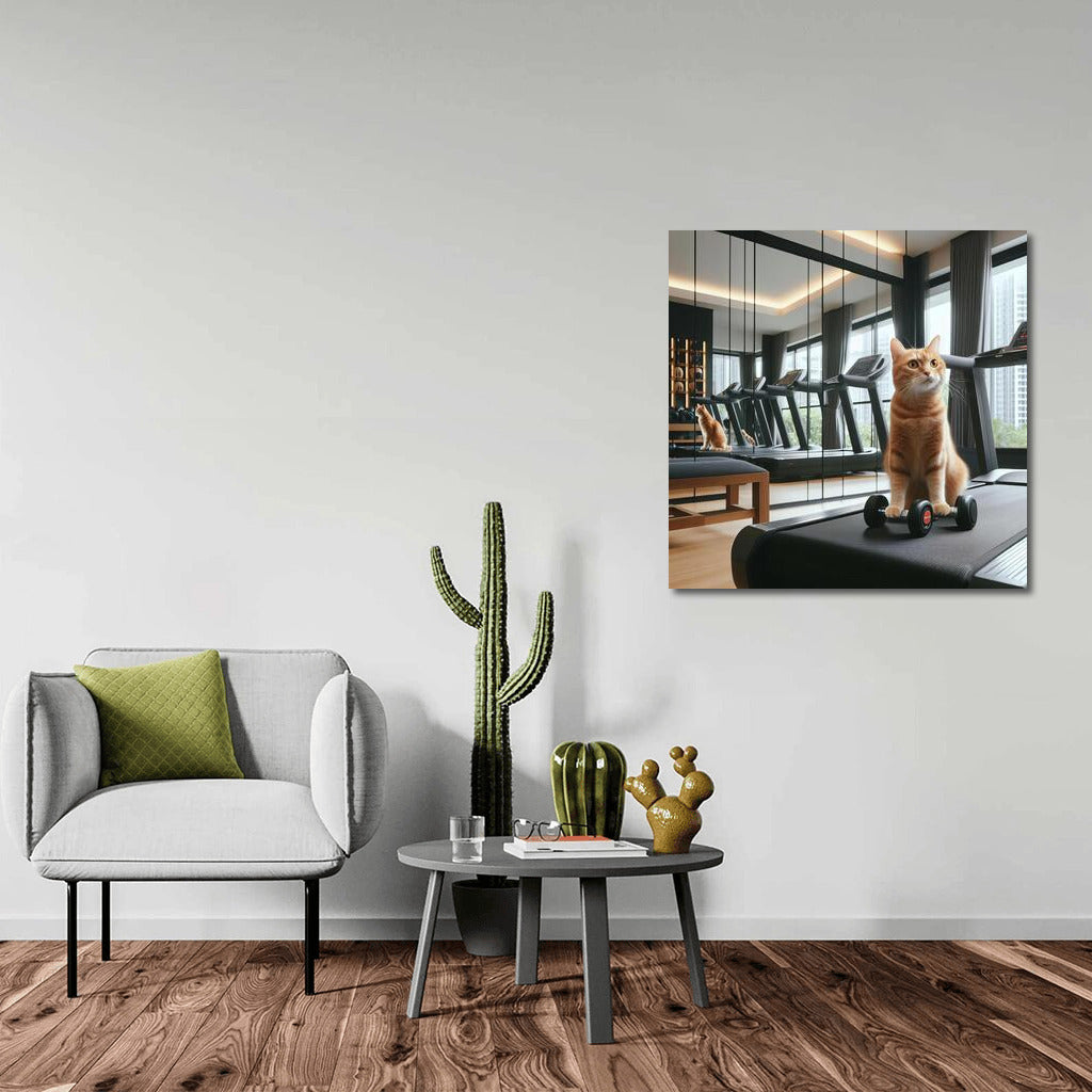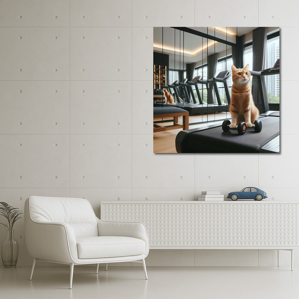 Fitness Cat on a Treadmill: Fluffy Athlete in a Modern Gym Wall Art