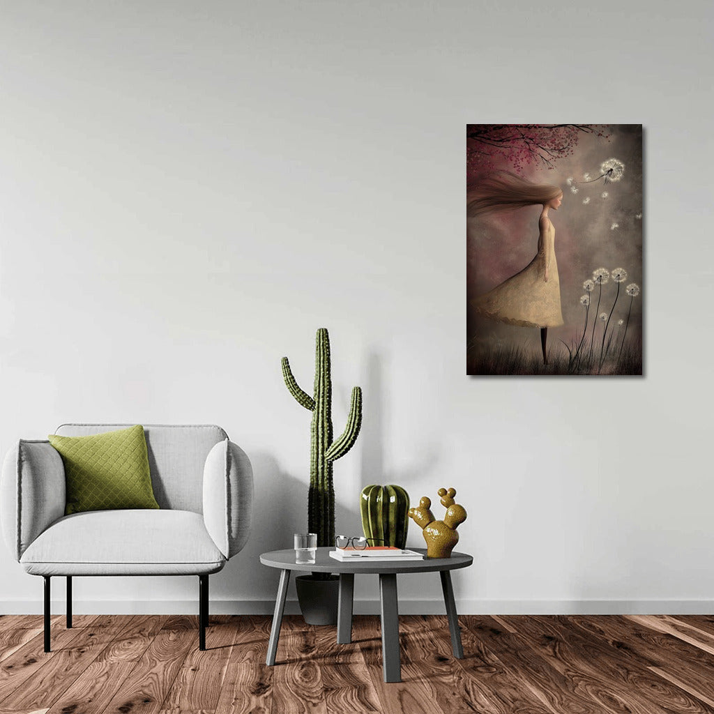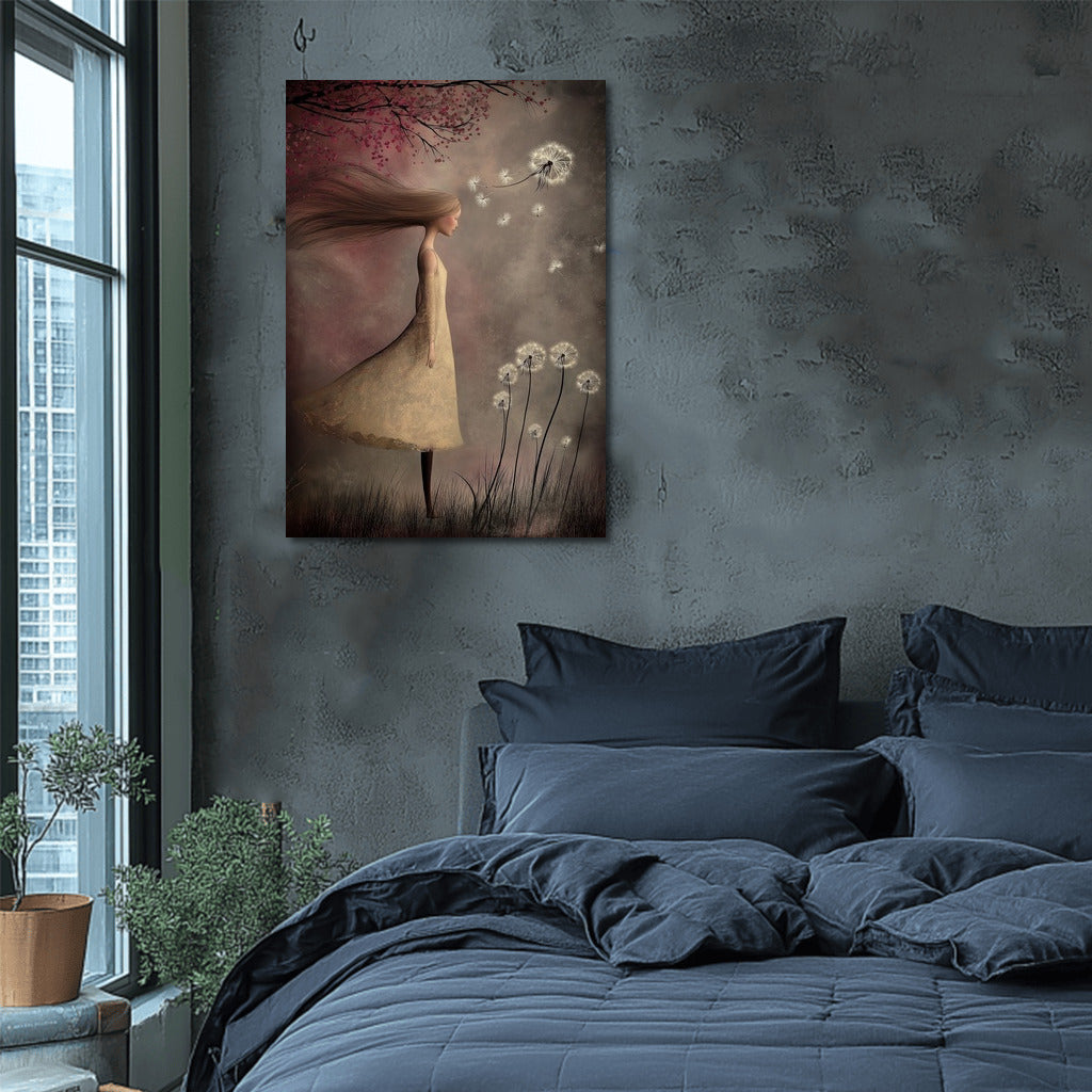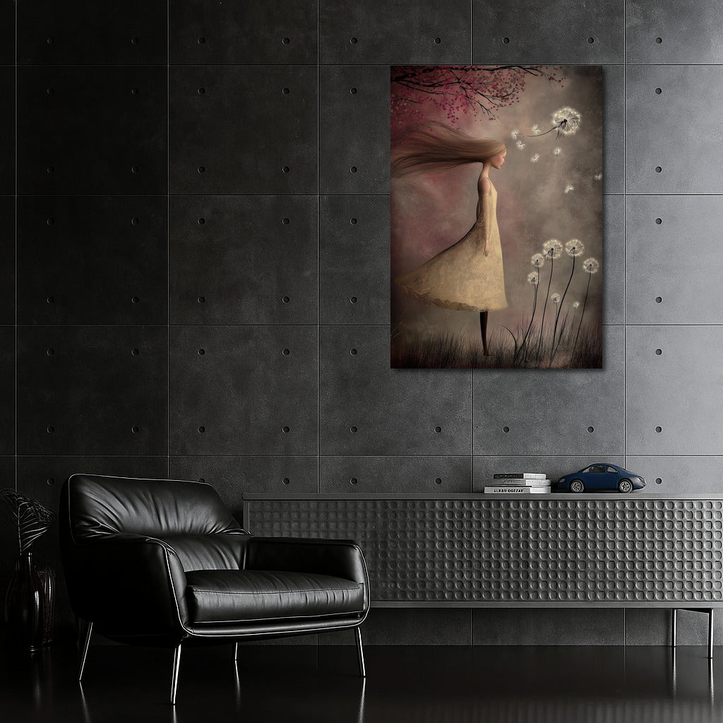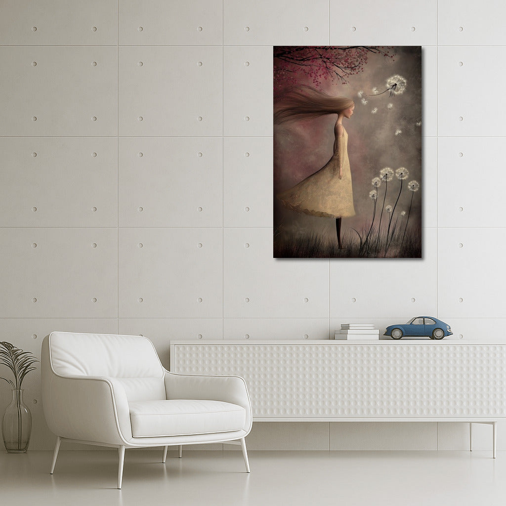 Poster Dreams: a graceful figure in a flight of fantasy among dandelions. A source of inspiration for your wall art. See more from the collection: Mixed Wall Art