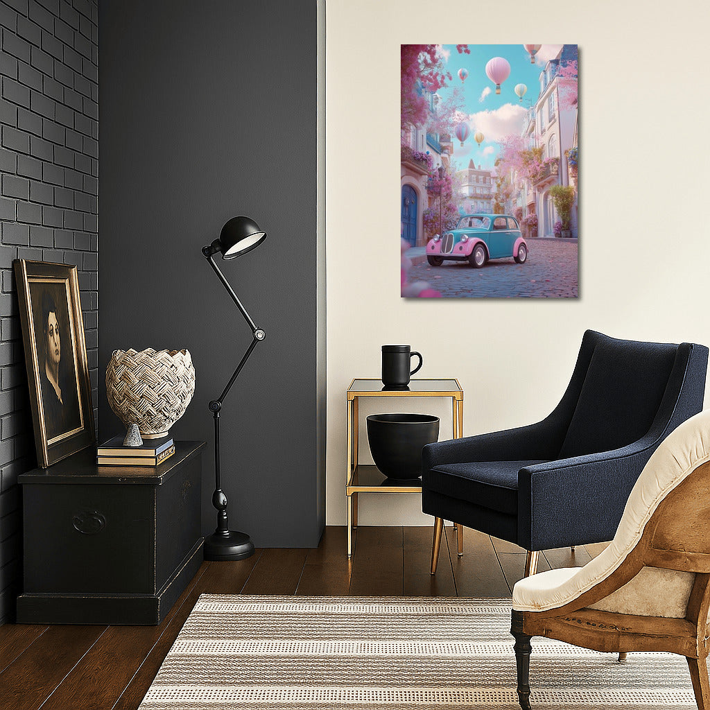 A fabulous poster of a retro Citroën car on a cozy street under balloons. Wall art that creates a dreamy mood. See more from the collection: Mixed Wall Art