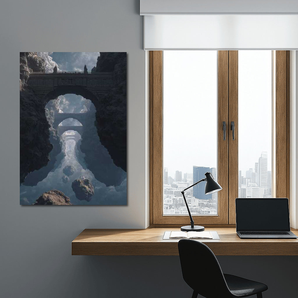 Floating Bridge in the Clouds: Architectural Fantasy Wall Art