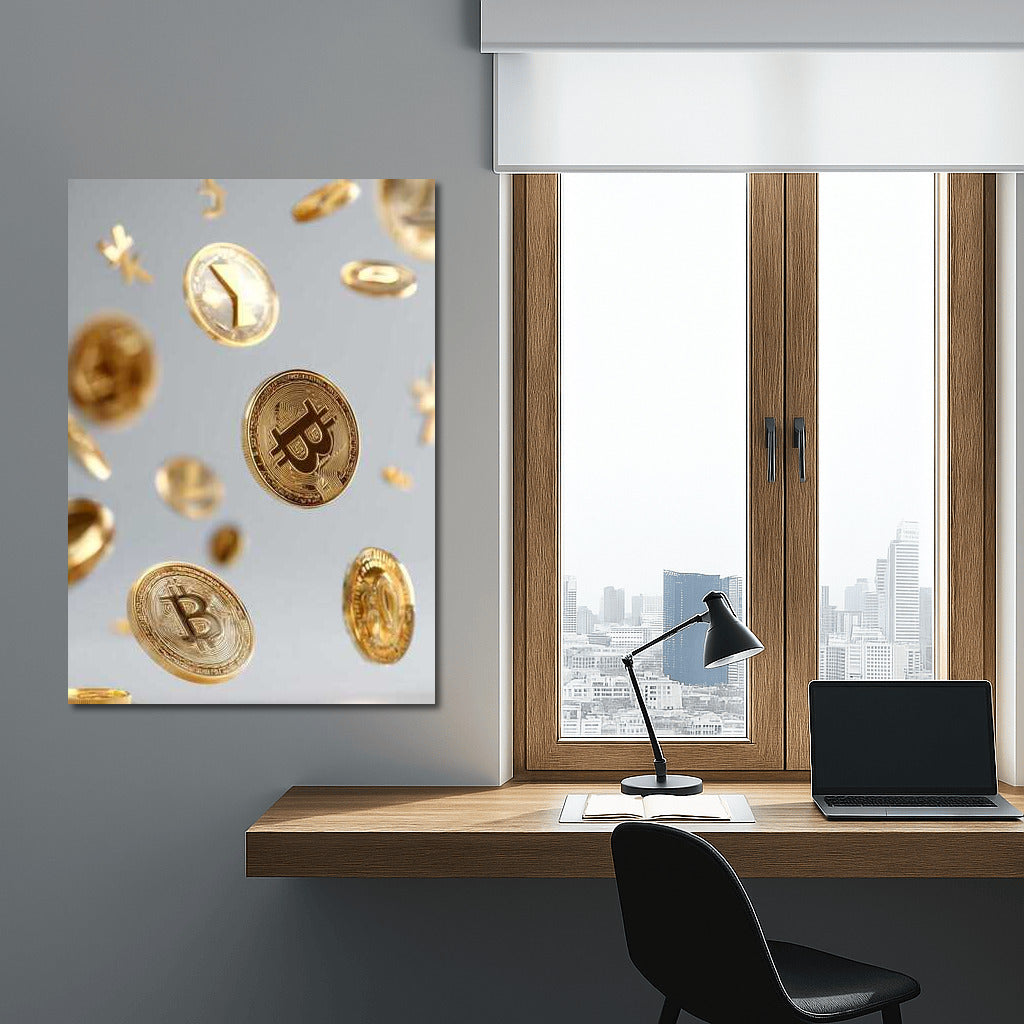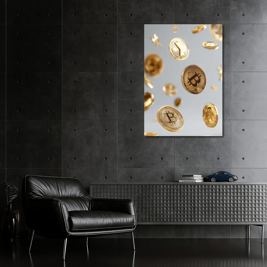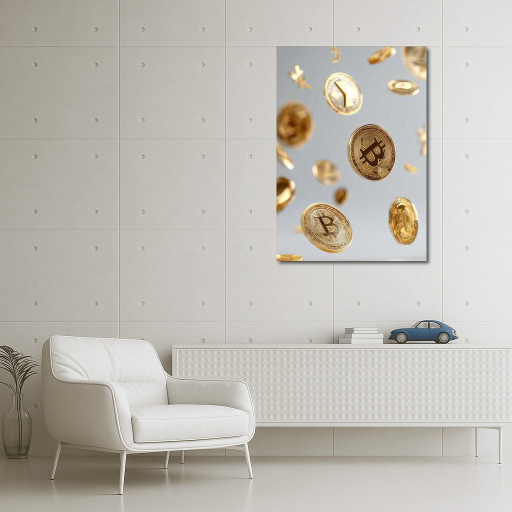 Floating Gold Coins Cryptocurrency: The Atmosphere of the Digital Age Wall Art