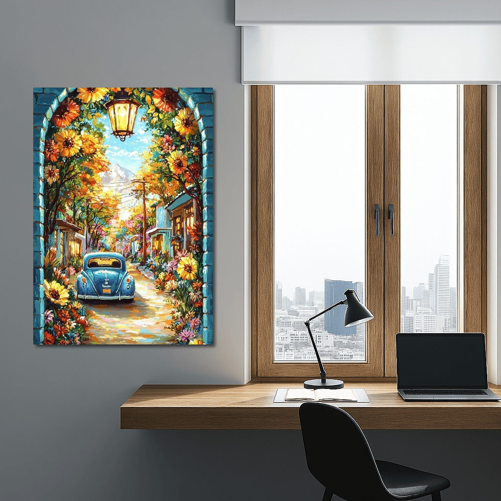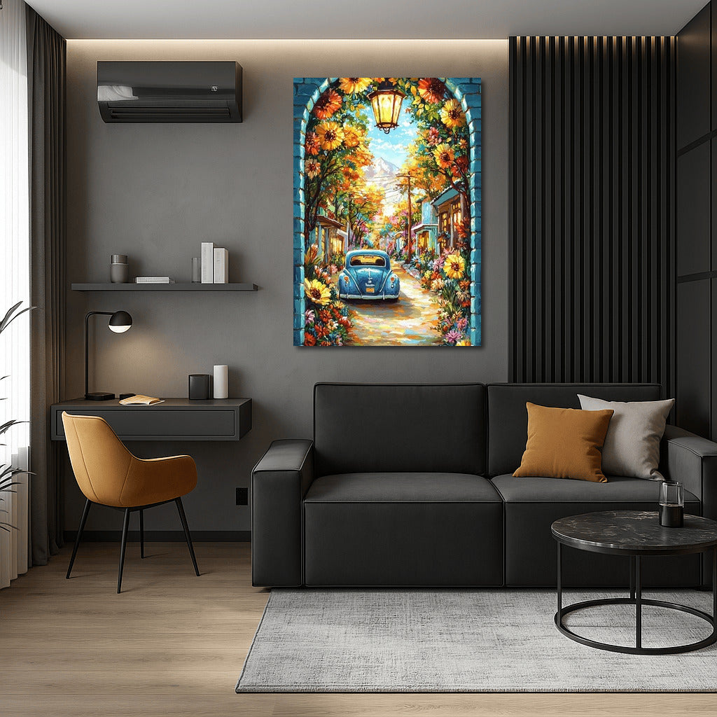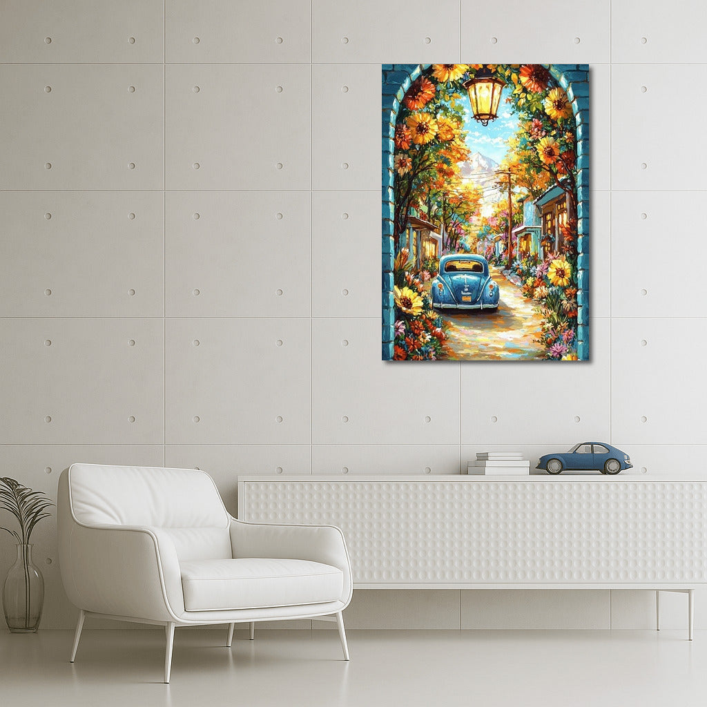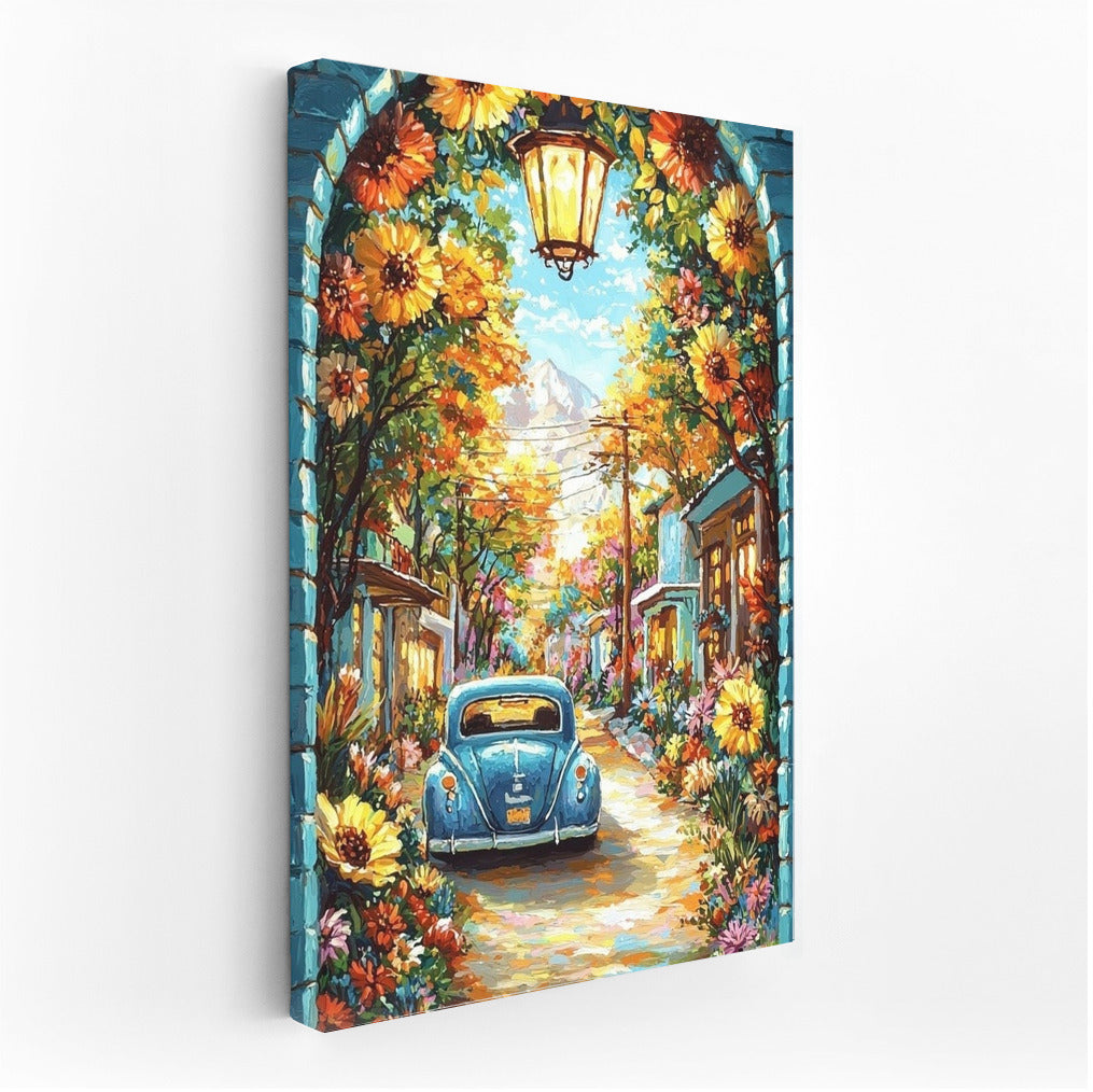 Flora and Volkswagen: Retro Fairytale in Flowers Wall Art