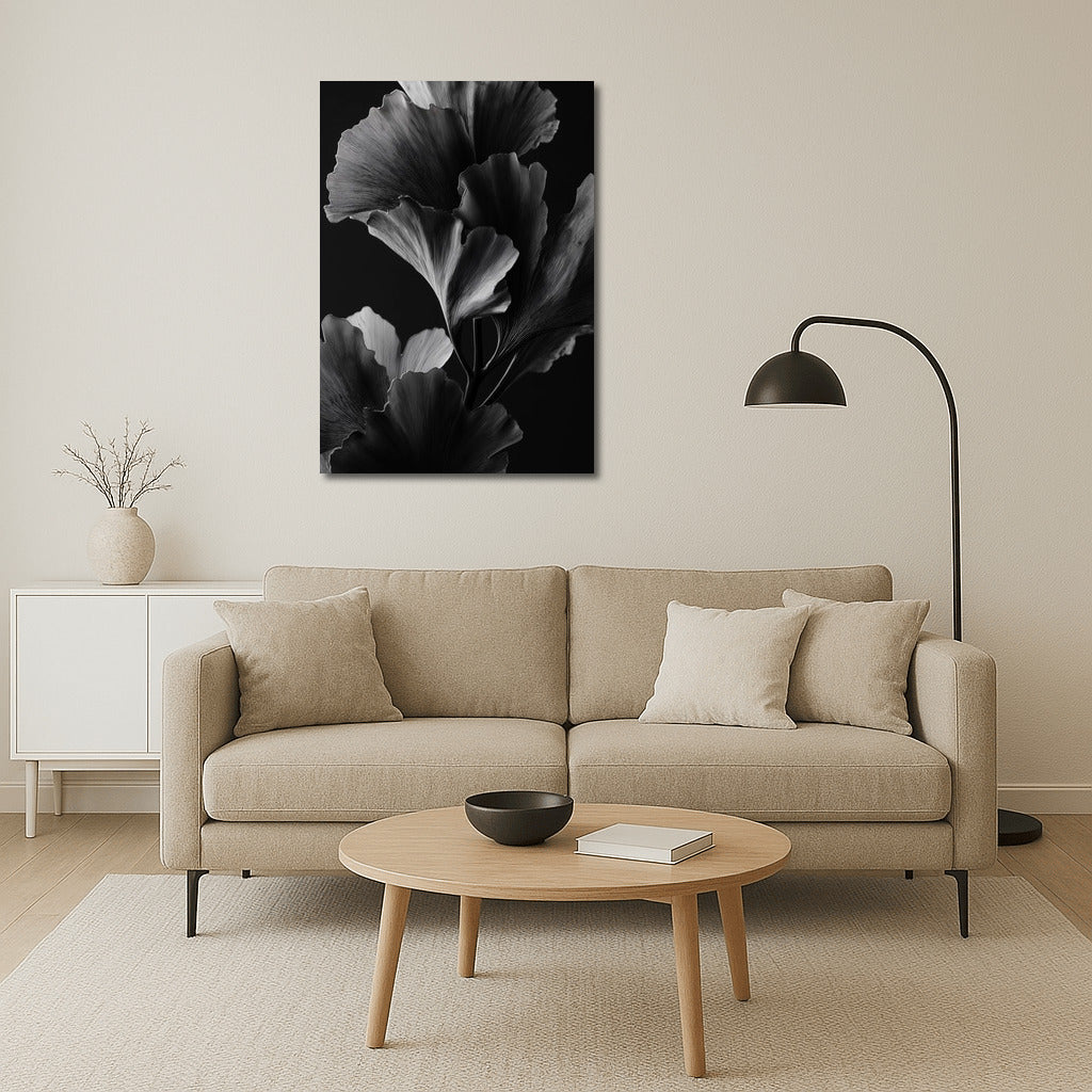 Immerse yourself in the elegance of wall art: a poster with exquisite ginkgo leaves is a unique decoration for your interior. See more from the collection: Black Flowers Art