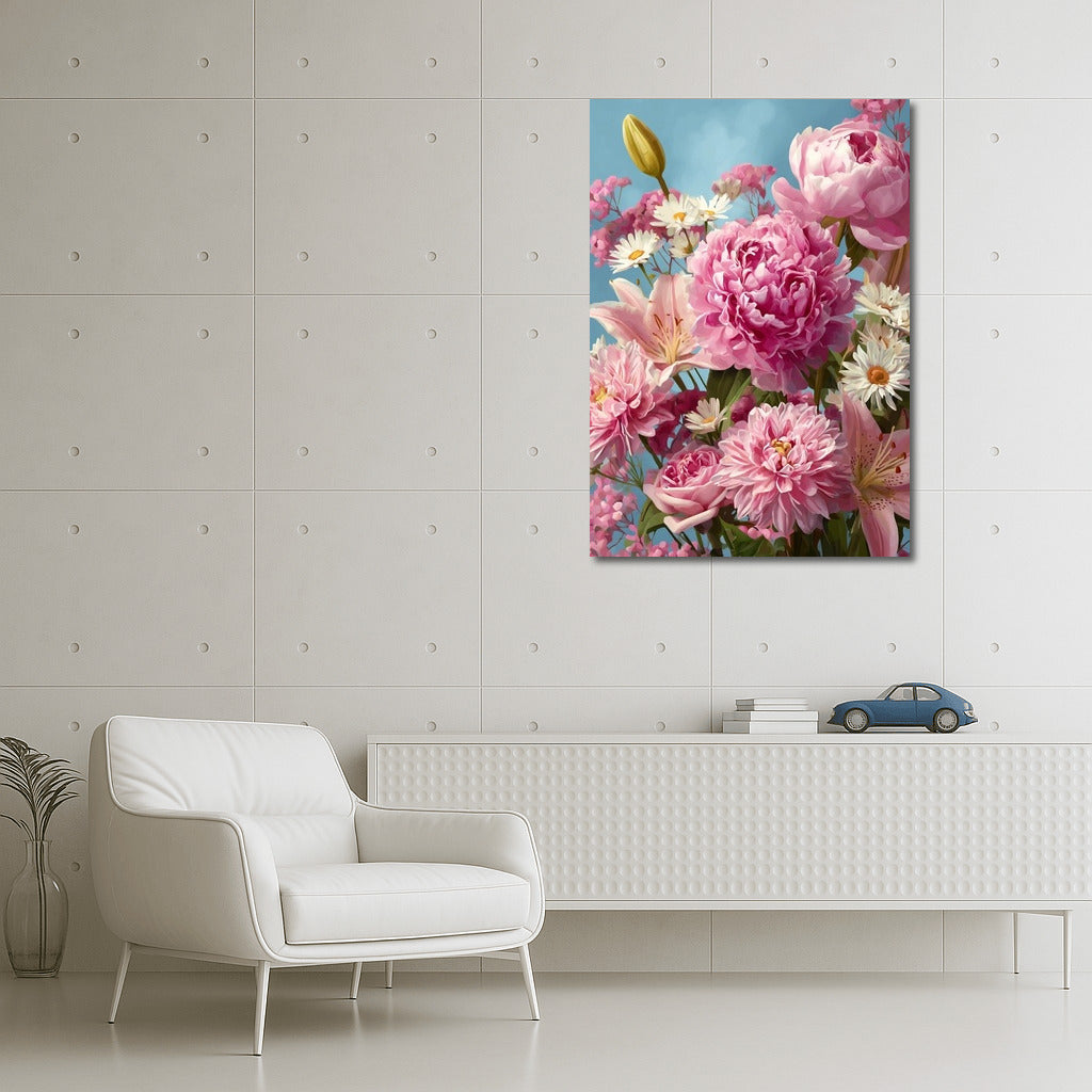 Floral Symphony: Sarah Bernhardt Peonies, Lilies and Daisies Wall Art