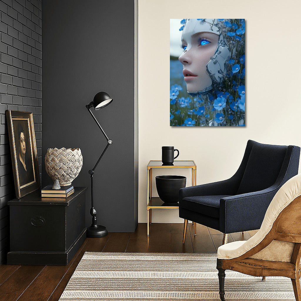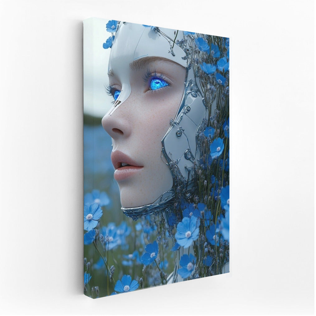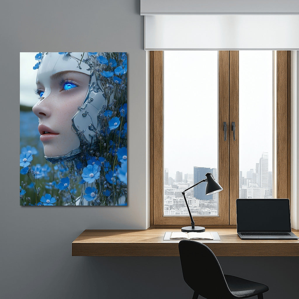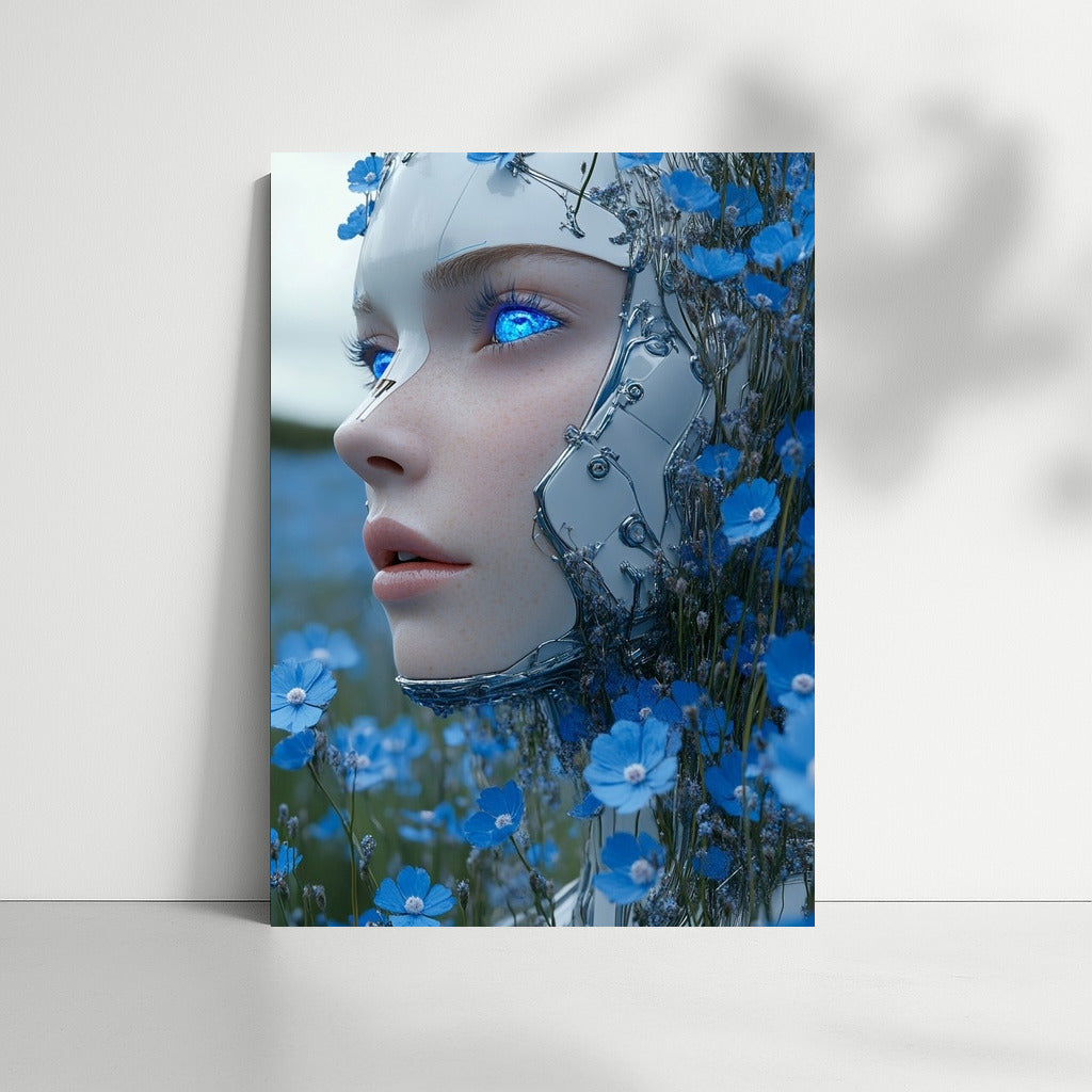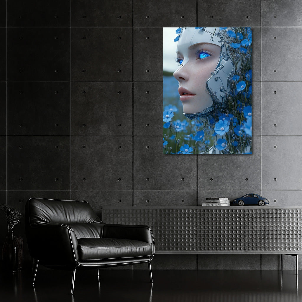 Futuristic painting: artificial intelligence and nature in blooming symbiosis. Perfect wall art for dreamers! See more from the collection: Mixed Wall Art