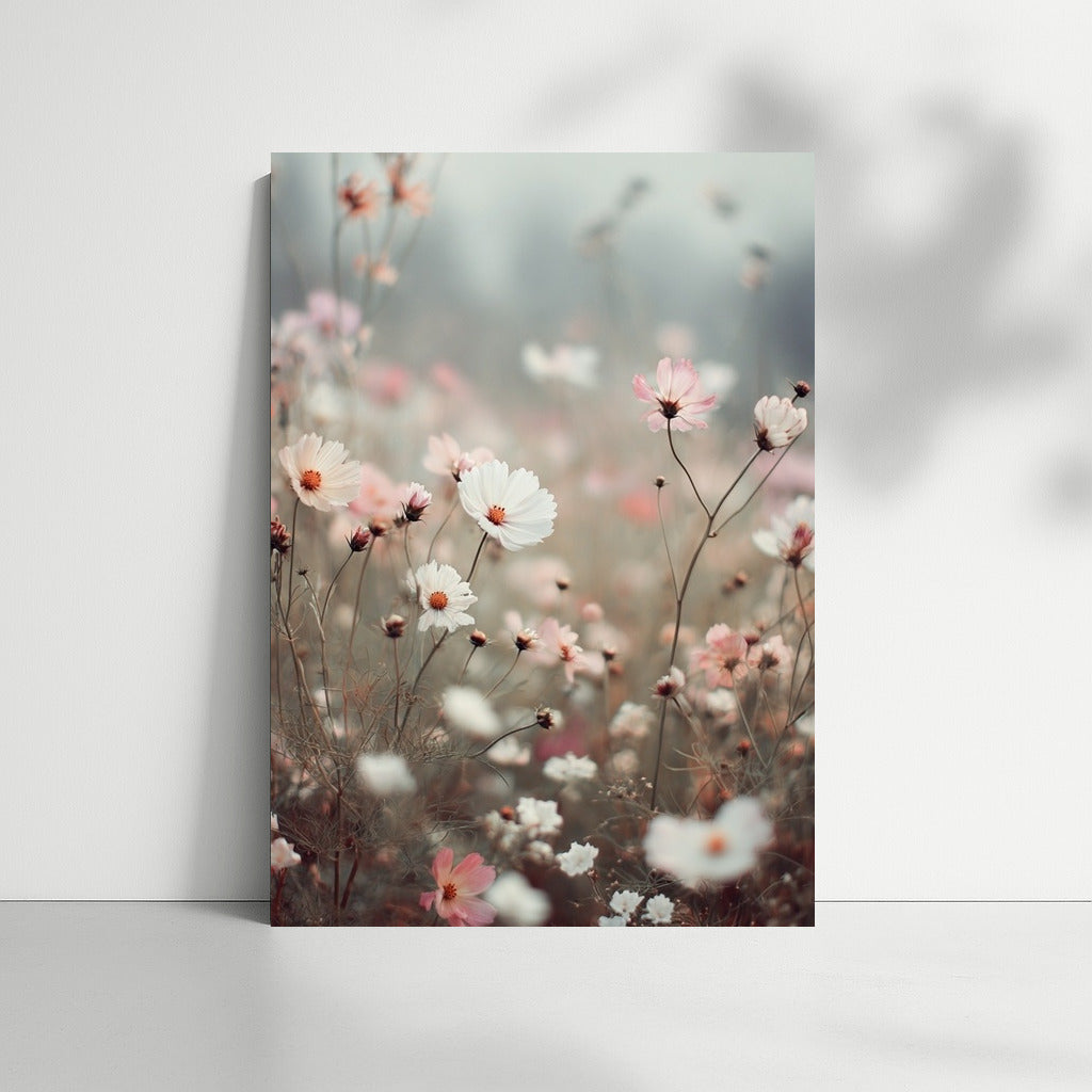 Romantic cosmos flowers bloom on the art poster, bringing tenderness and harmony to your wall art. See more from the collection: Flowers Art