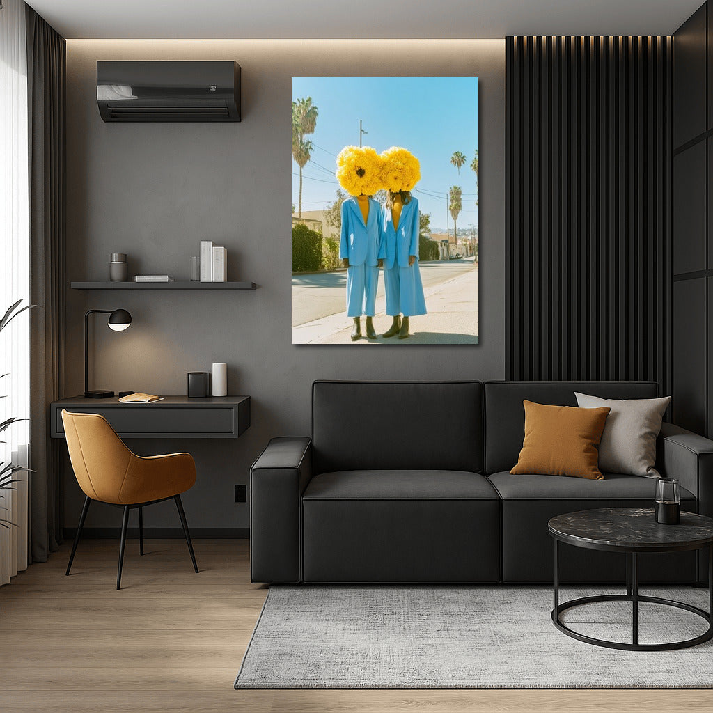 Bright poster: figures in stylish suits with flower heads. This painting will add creativity and brightness to your space! See more from the collection: Mixed Wall Art