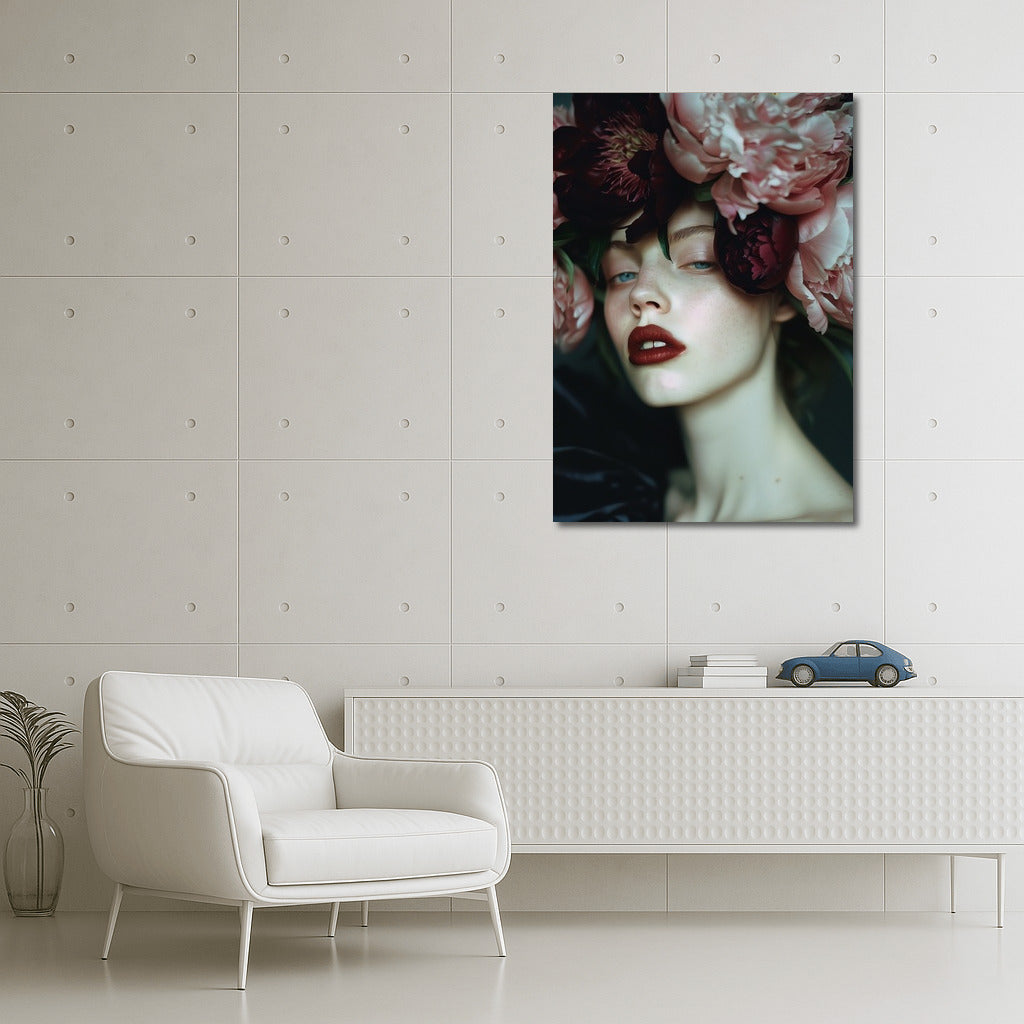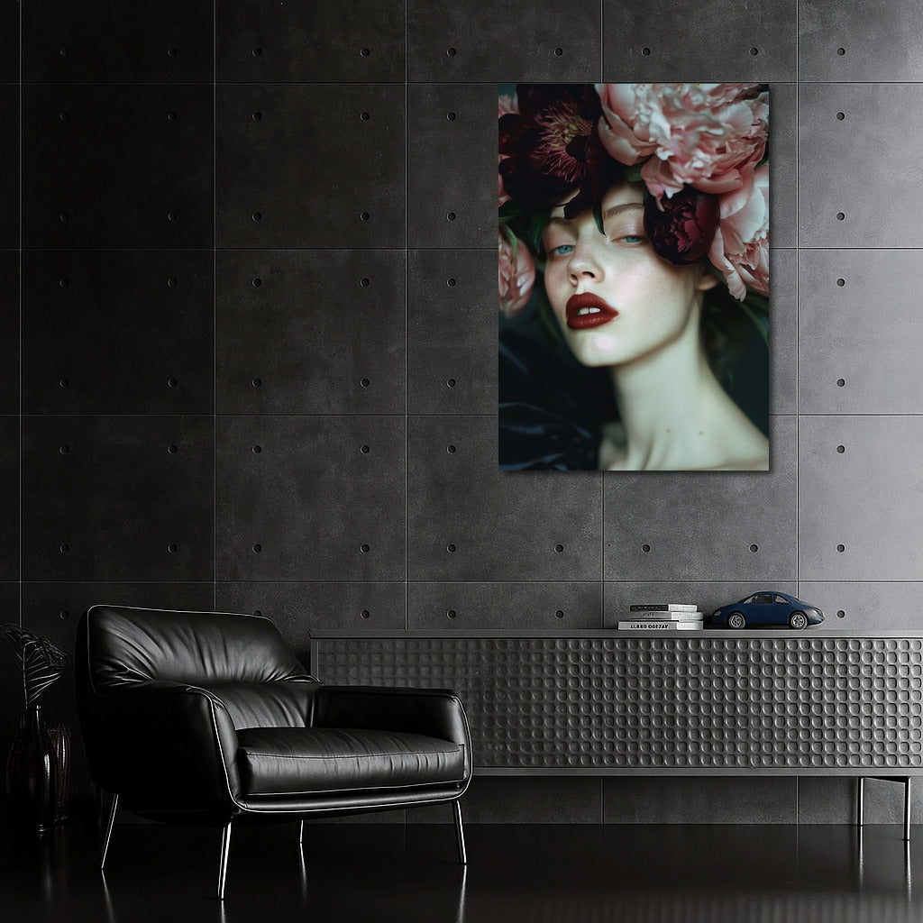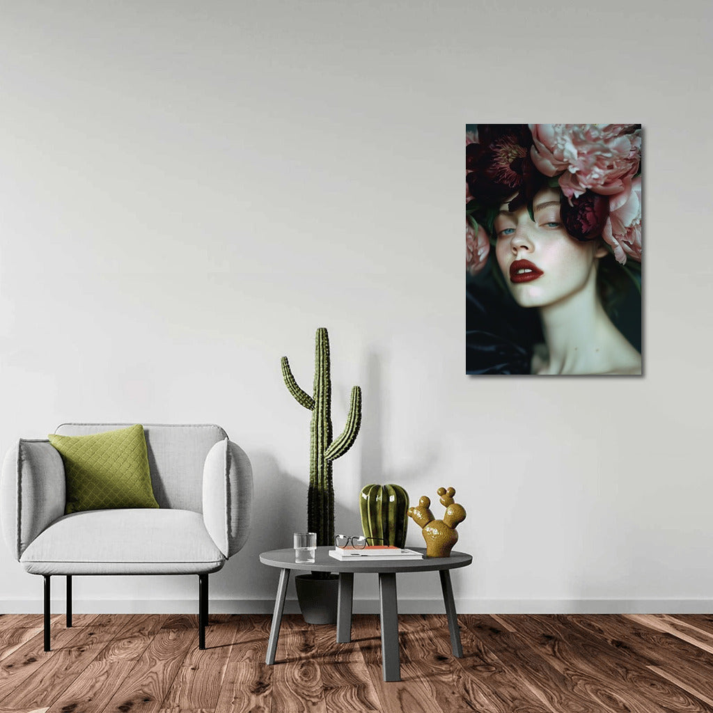 Dive into a fantasy world with this painting! A mysterious figure in flowers brings life to any space. Wall art that creates dreams. See more from the collection: Wall Art with Women