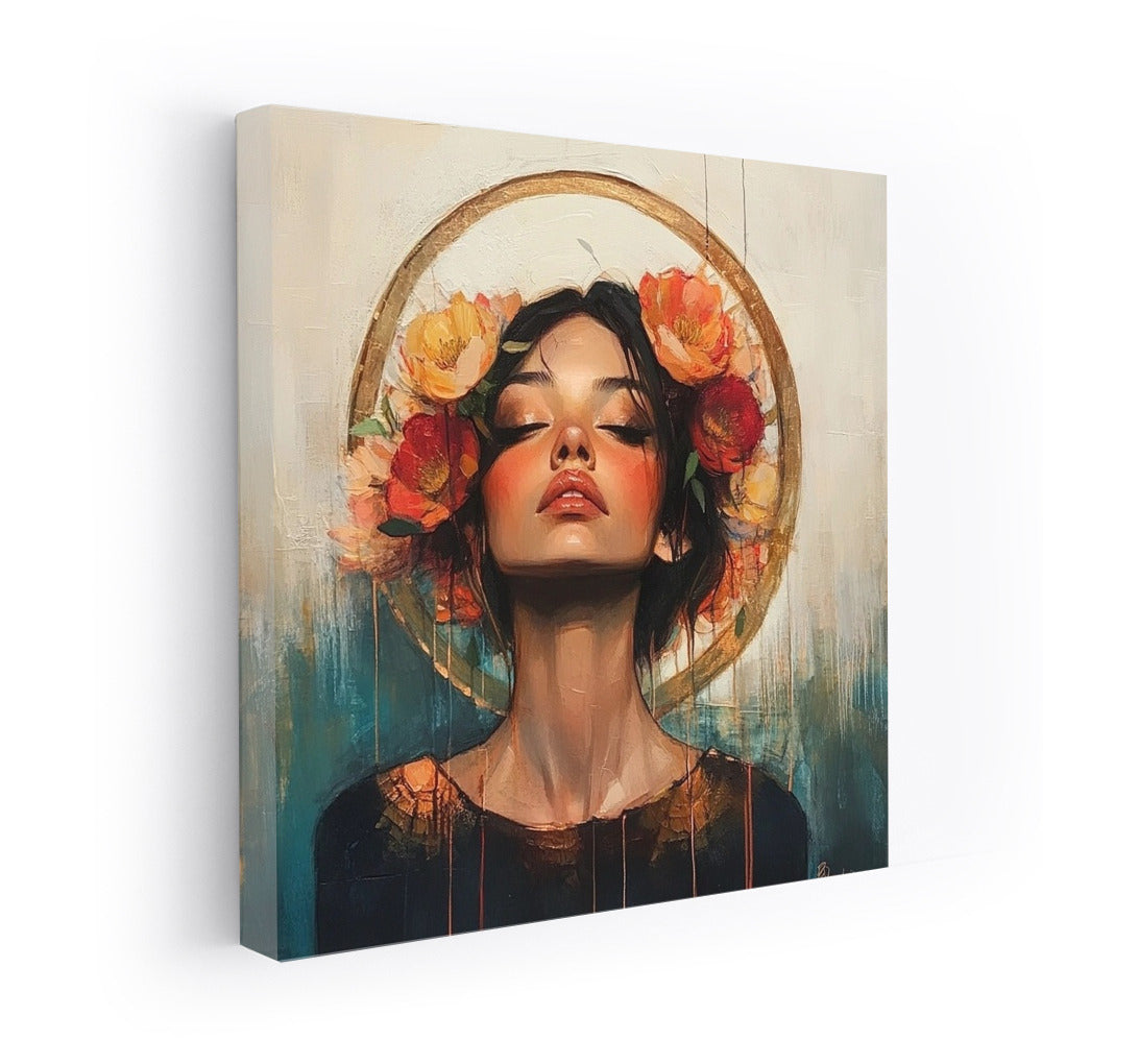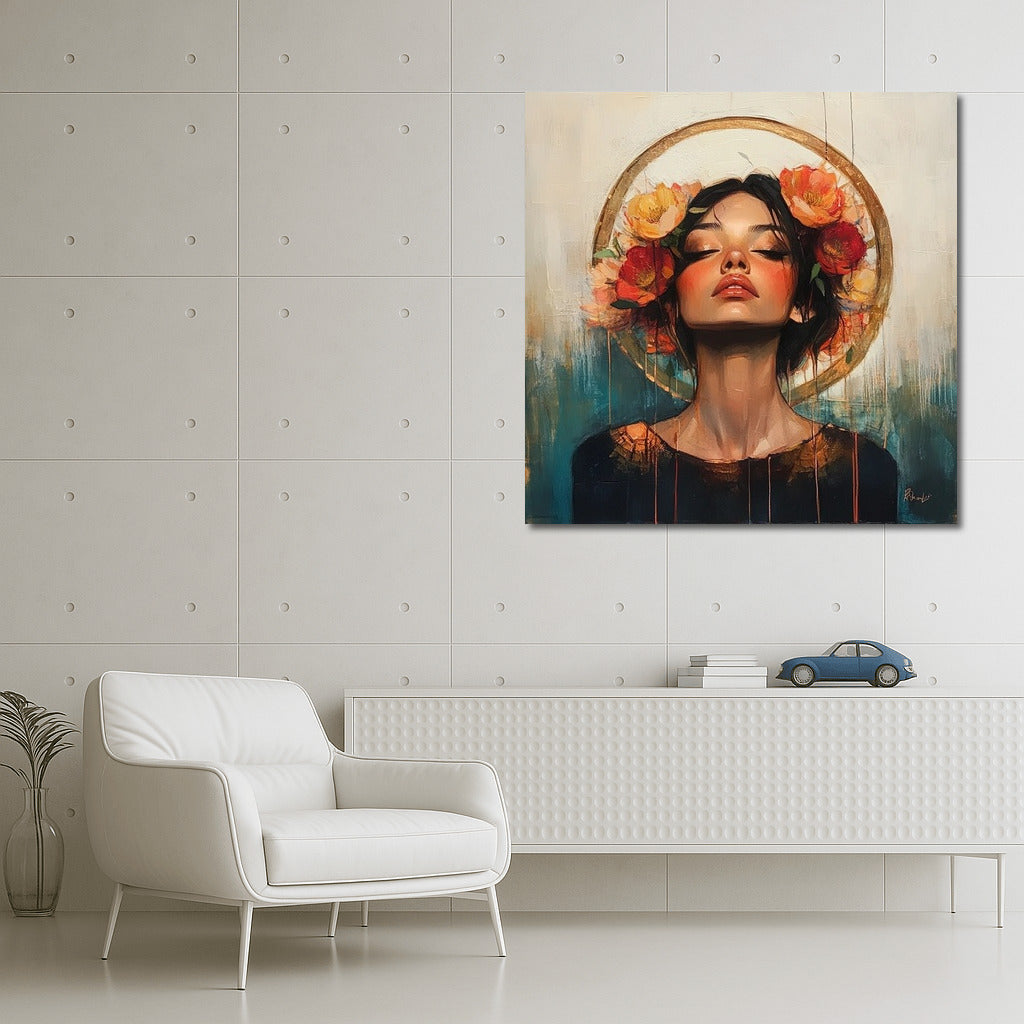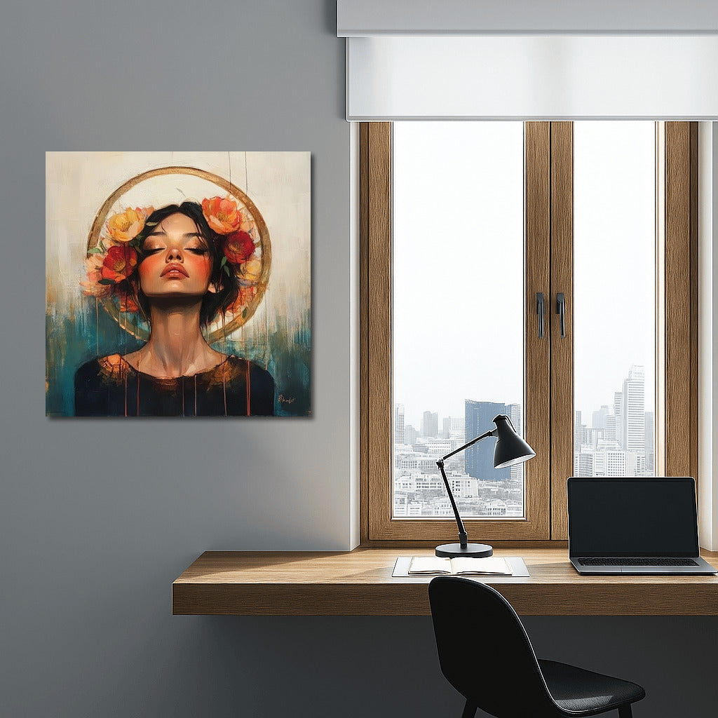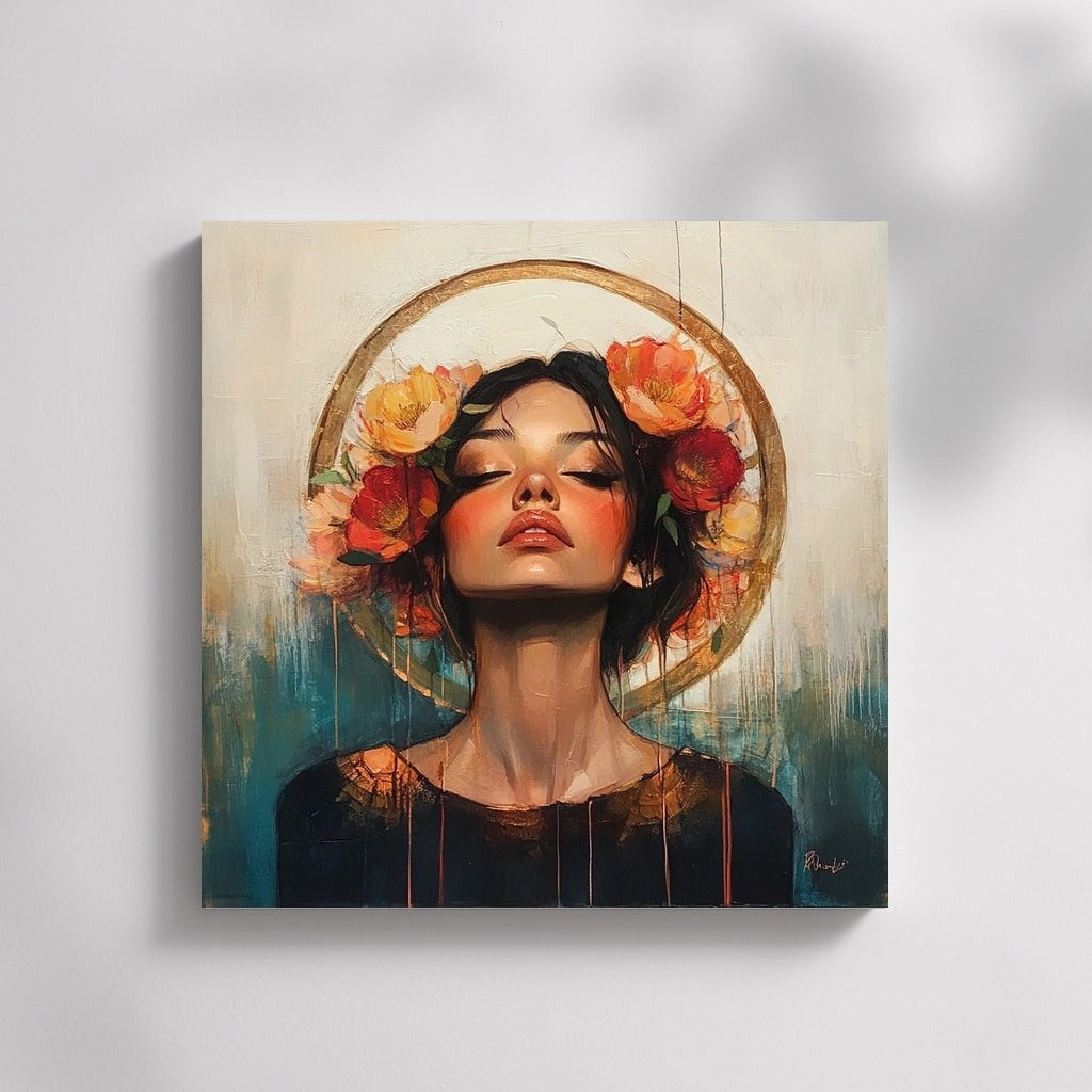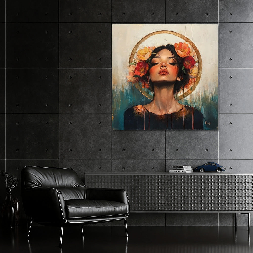 Subtle wall art: a daydream among flowers, where the harmony of colors transforms the painting into an iconic poster. See more from the collection: Mixed Wall Art