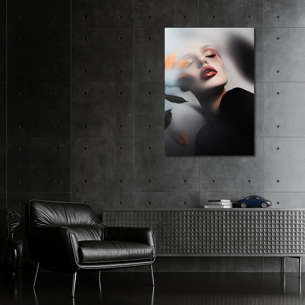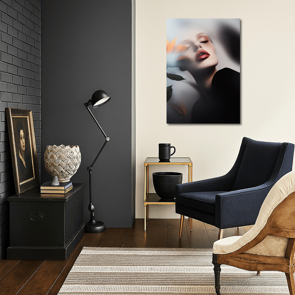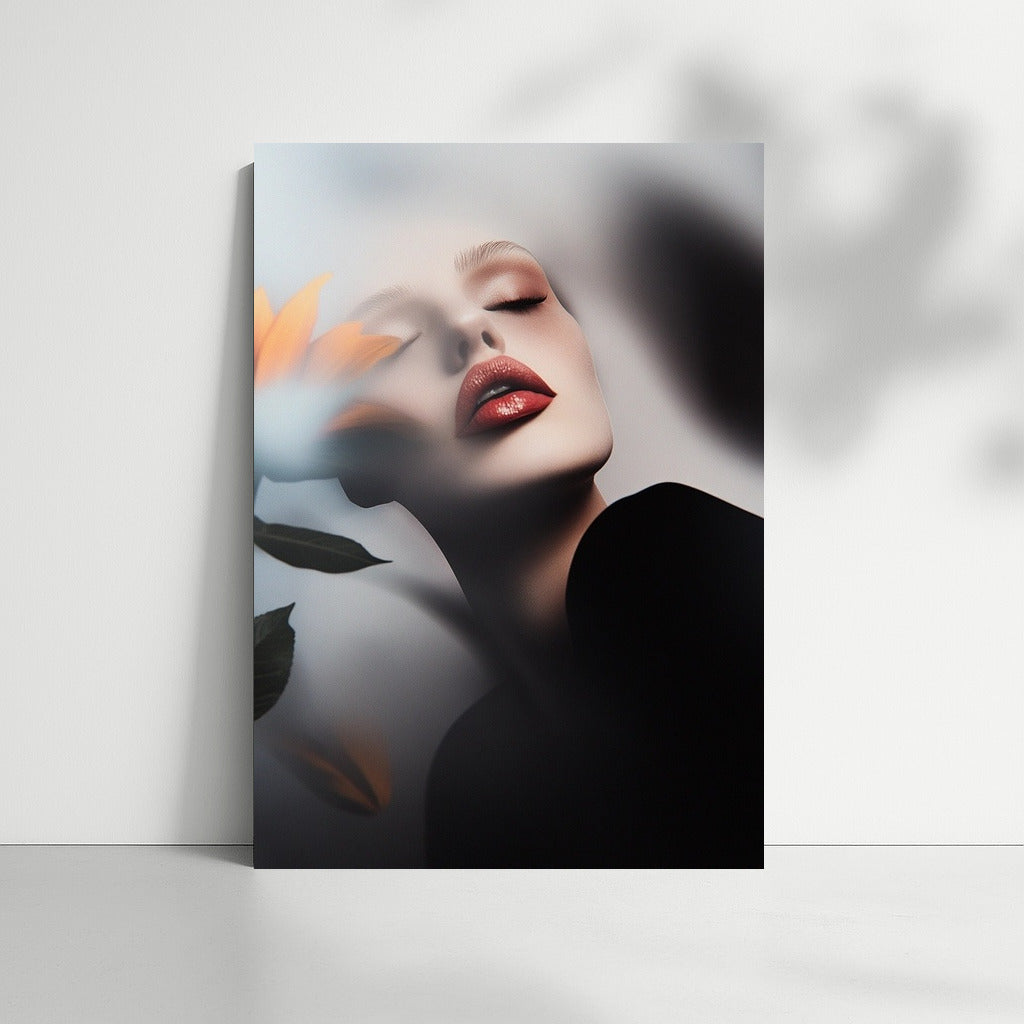 Elegance and mystery. A poster where the art of flowers and dreaminess create an atmosphere of tenderness and mystery. See more from the collection: Wall Art with Women