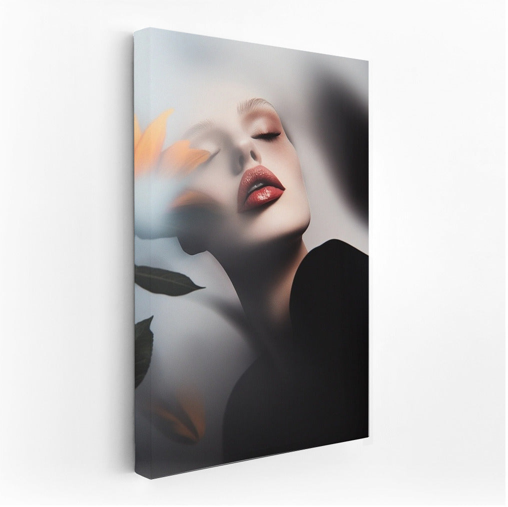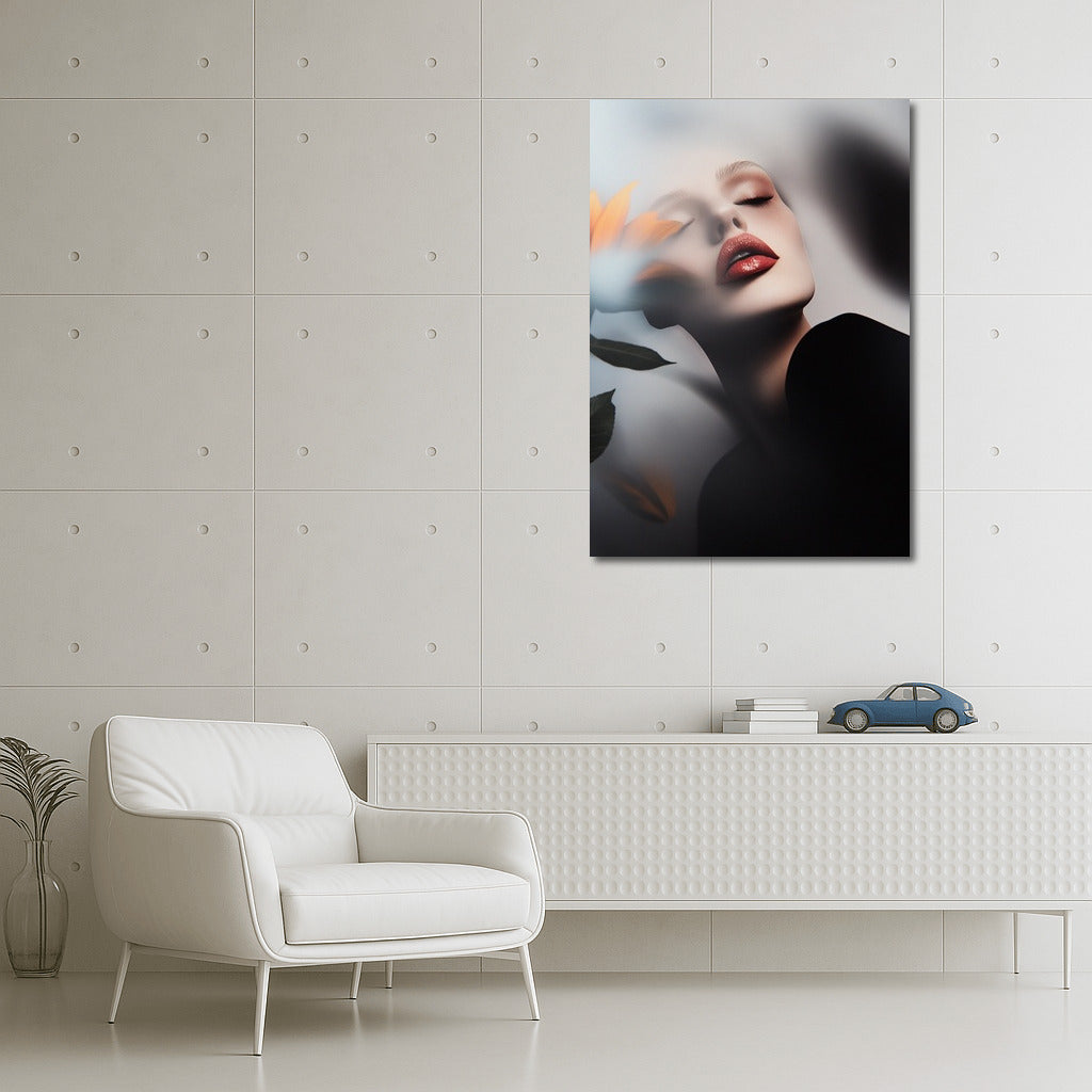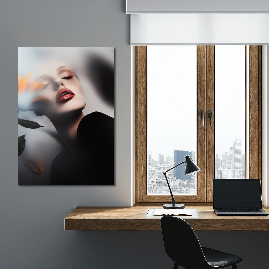 Elegance and mystery. A poster where the art of flowers and dreaminess create an atmosphere of tenderness and mystery. See more from the collection: Wall Art with Women