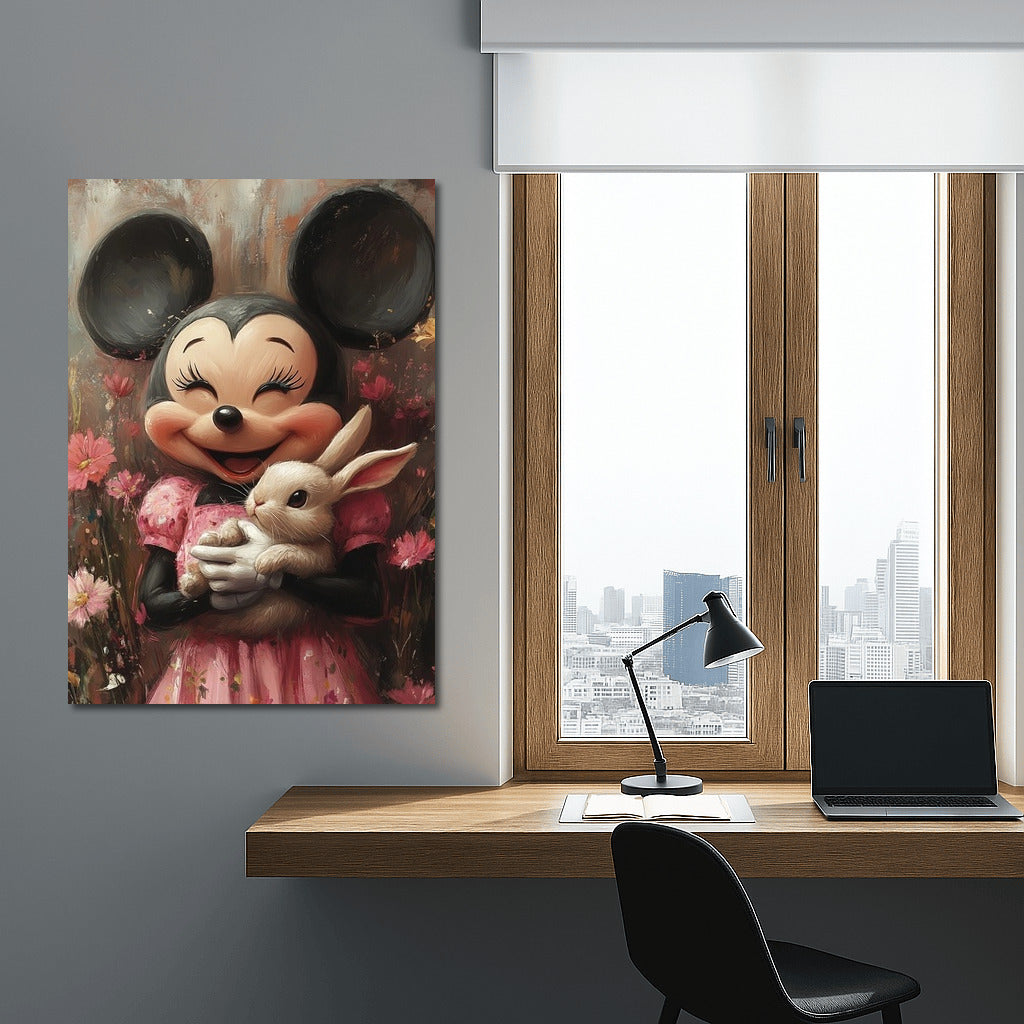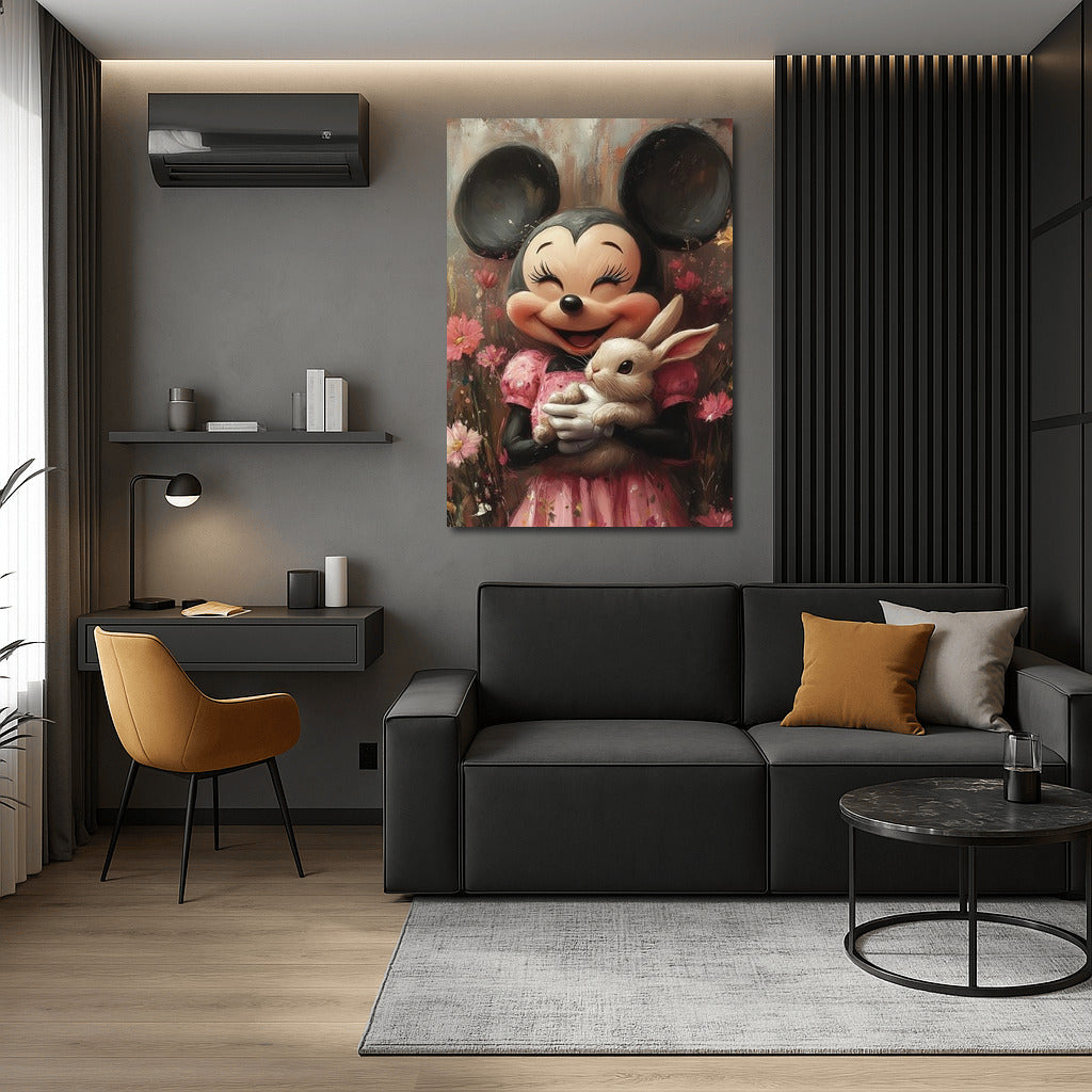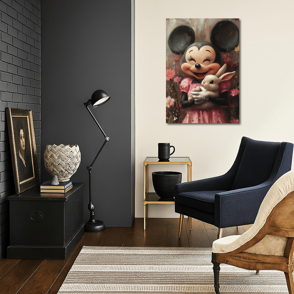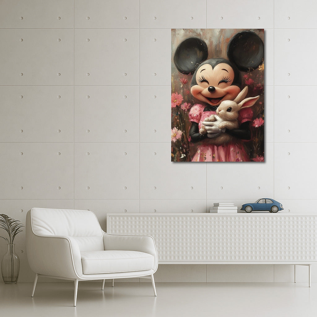 Fairytale wall art: a smiling mouse hugging a bunny among flowers. Magic for your interior! See more from the collection: Cartoon Art