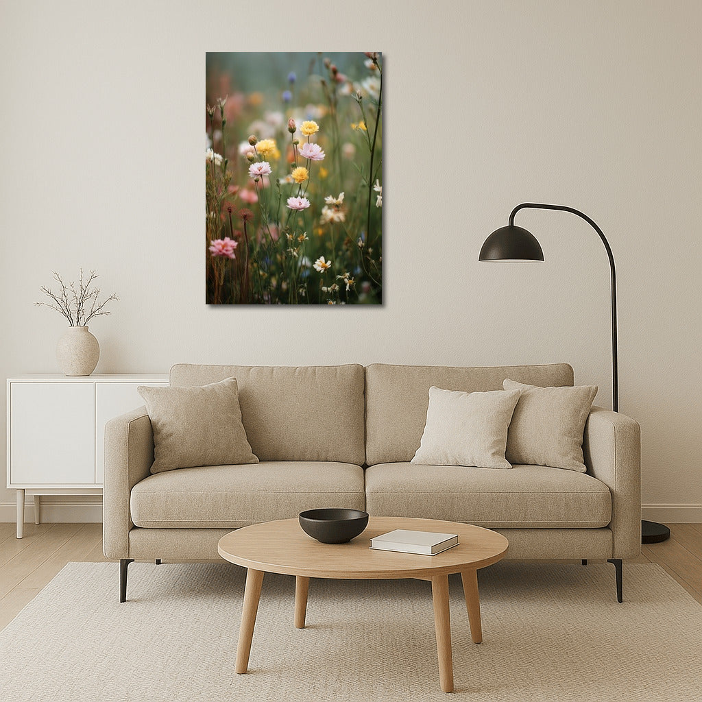 Floral riot of colors on the poster: delicate pink and yellow cosmos will enliven your interior. Real wall art! See more from the collection: Flowers Art