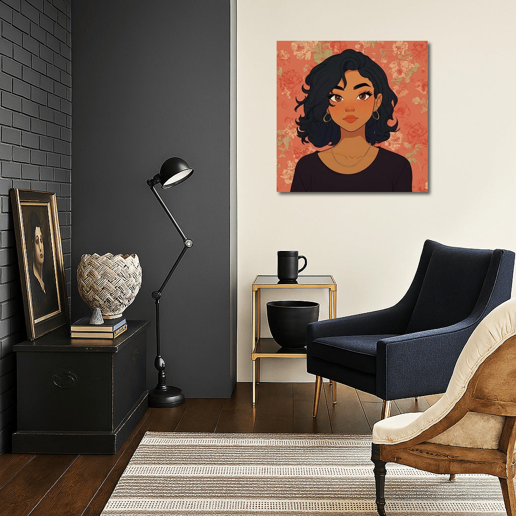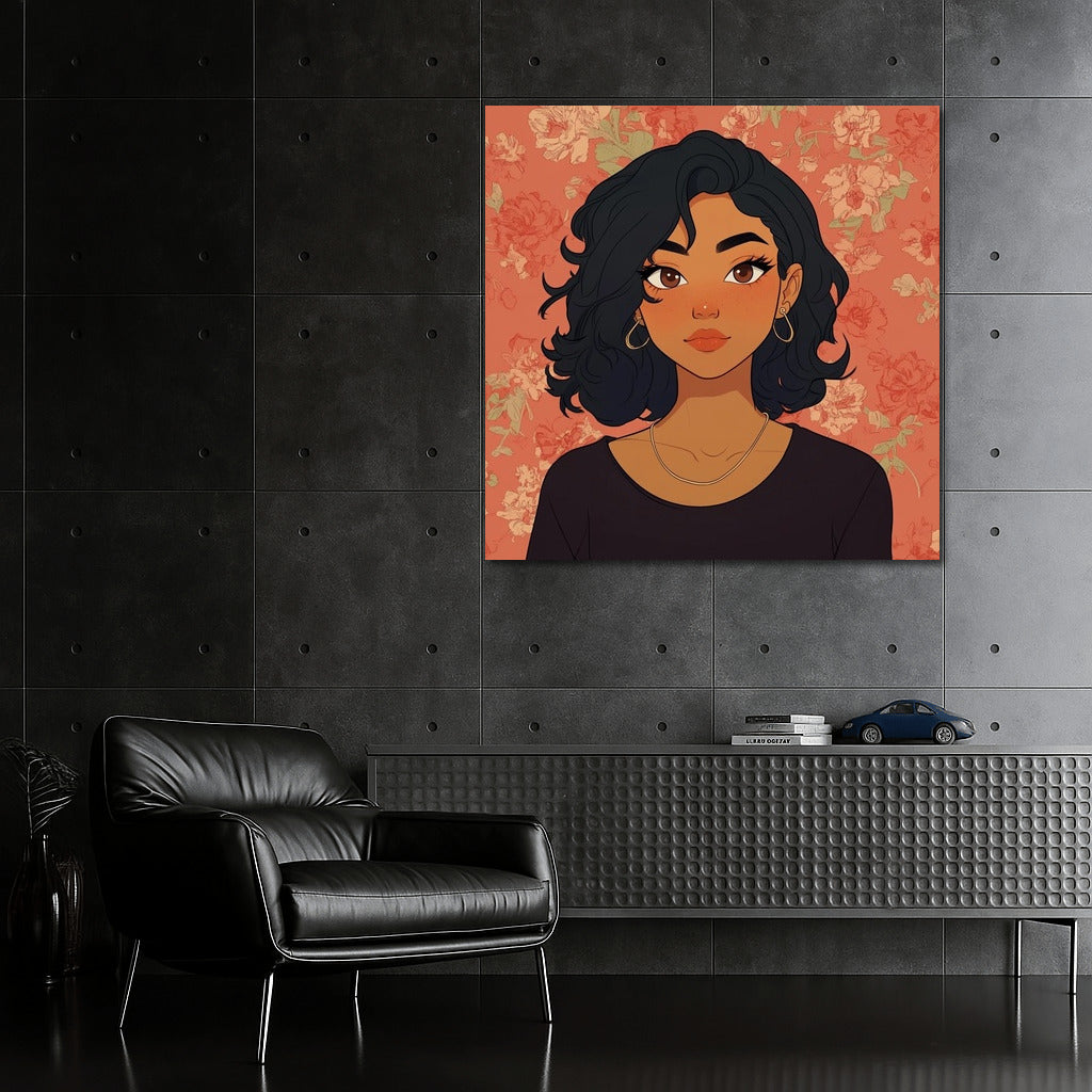 Delicate wall art: a mysterious heroine against a floral background. Will add charm and style to any interior. See more from the collection: Mixed Wall Art