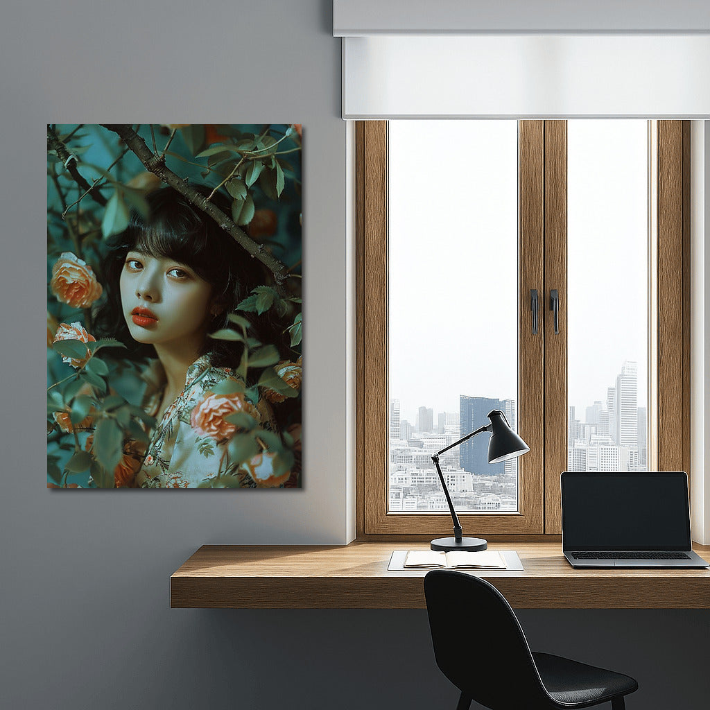 Inspired by nature: a poster with the image of a beautiful Asian girl among flowers will add magic to any space. See more from the collection: Wall Art with Women