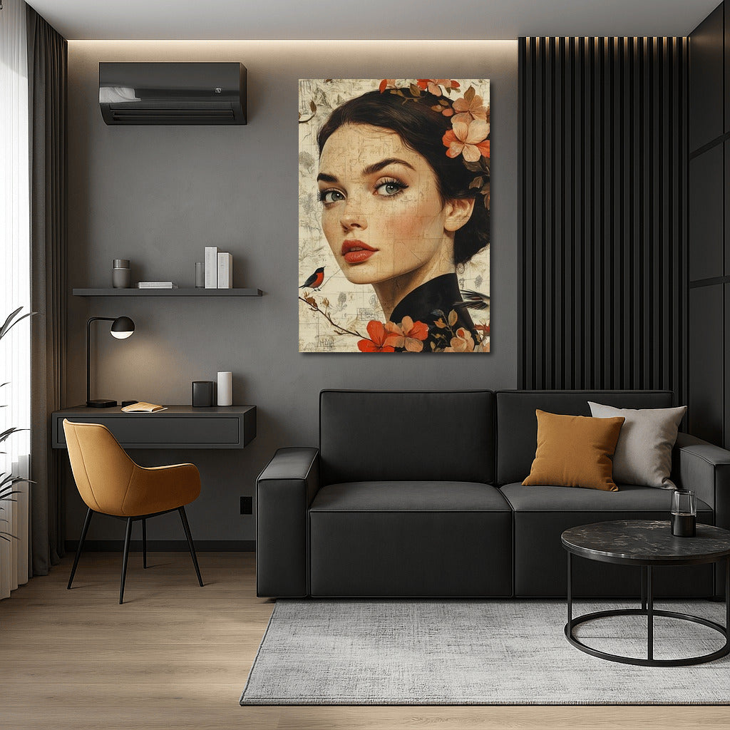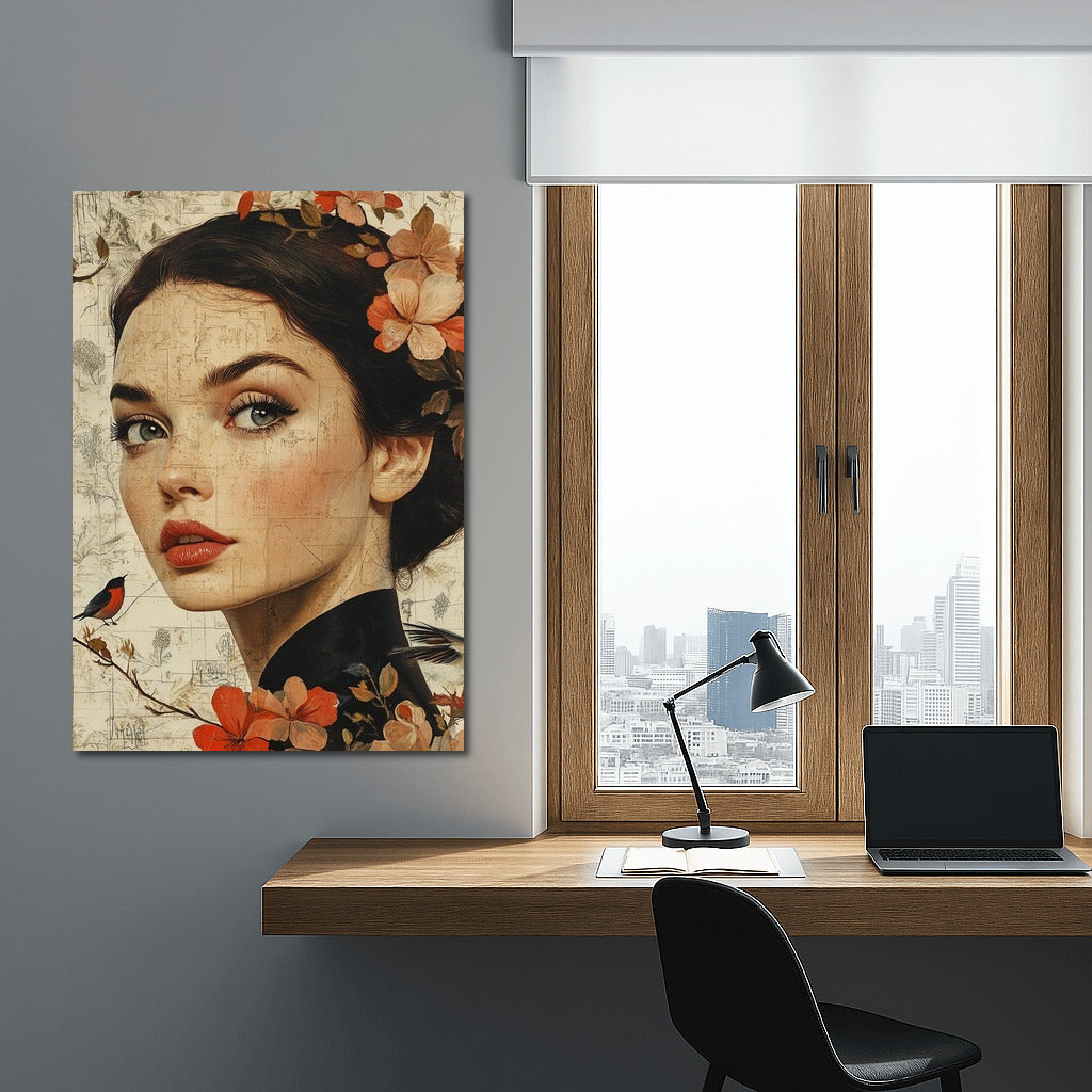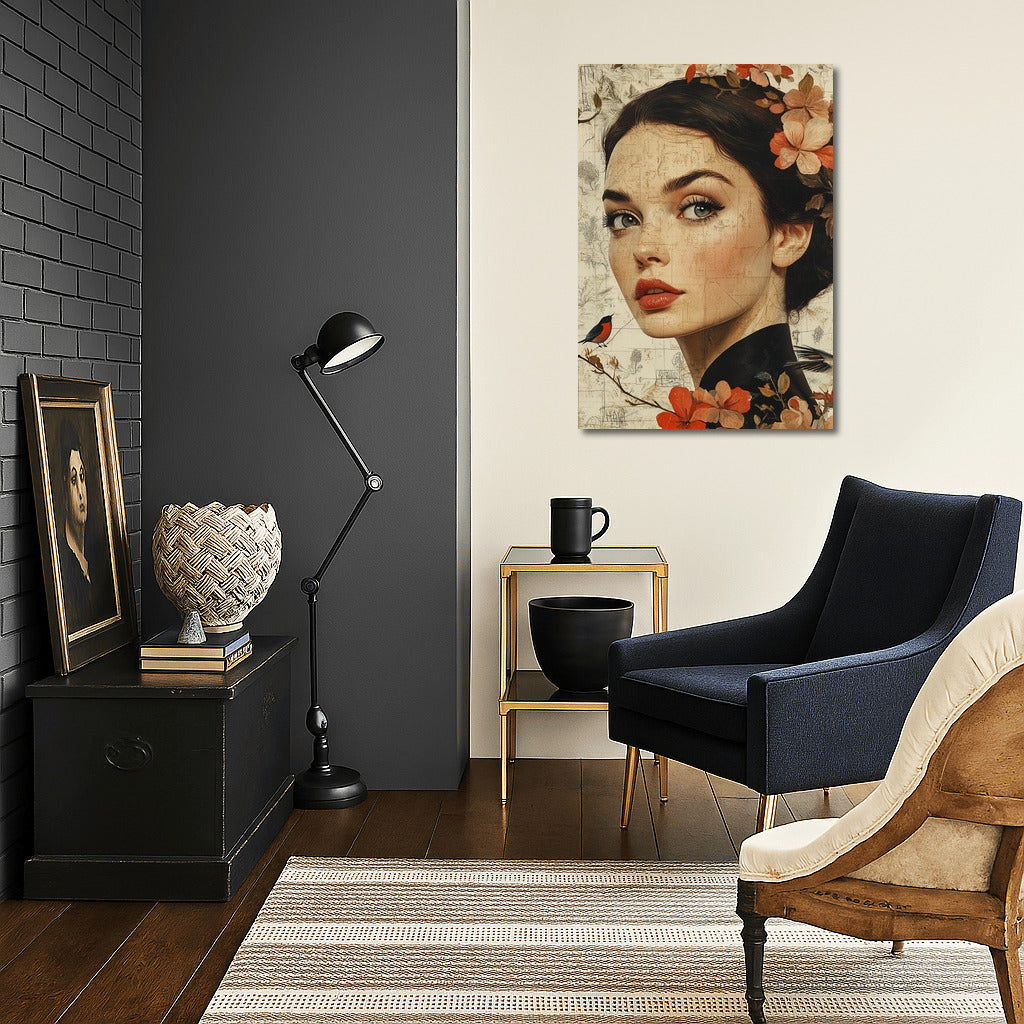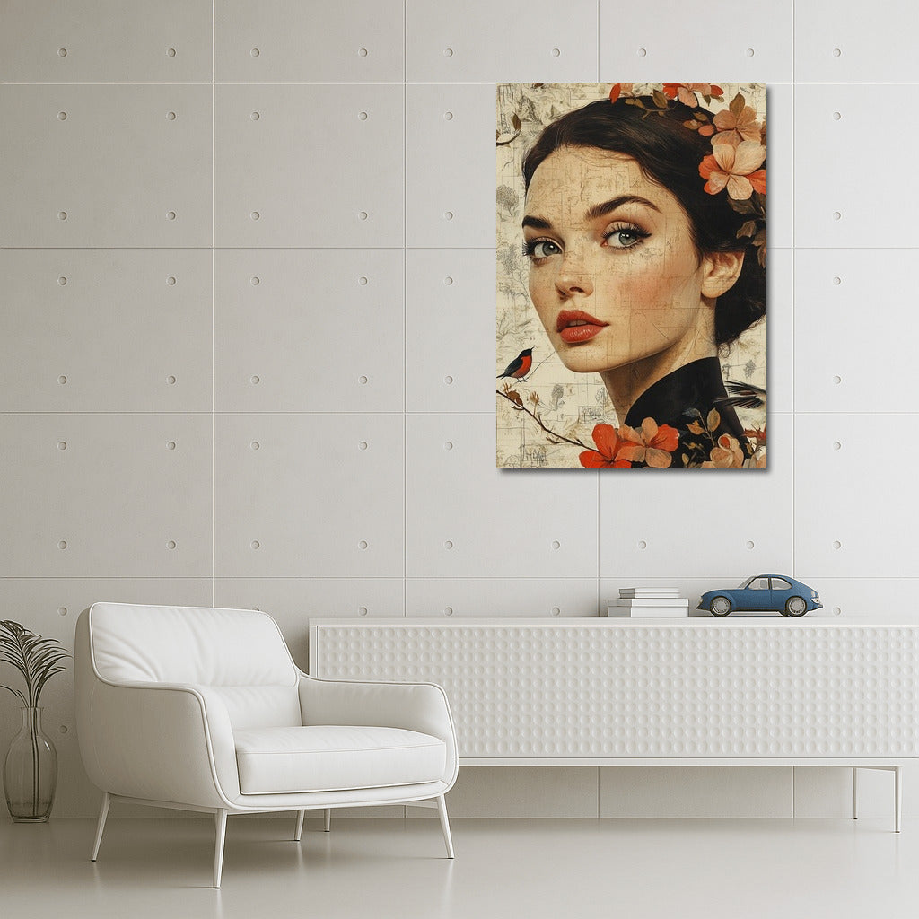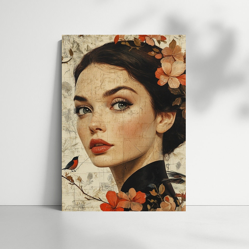 A luxurious painting: a gentle mystery and flowers come to life on canvas. This poster will become the pearl of your wall art! See more from the collection: Mixed Wall Art