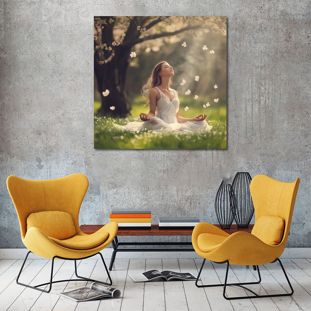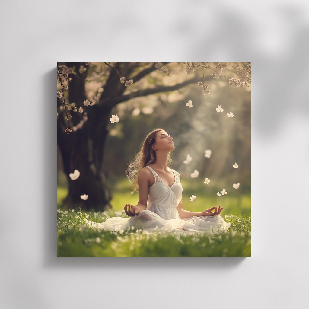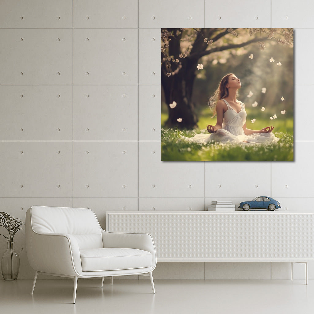 Meditation among flowers: calm and peace on your poster. Perfect wall art to create harmony in your home. See more from the collection: Mixed Wall Art