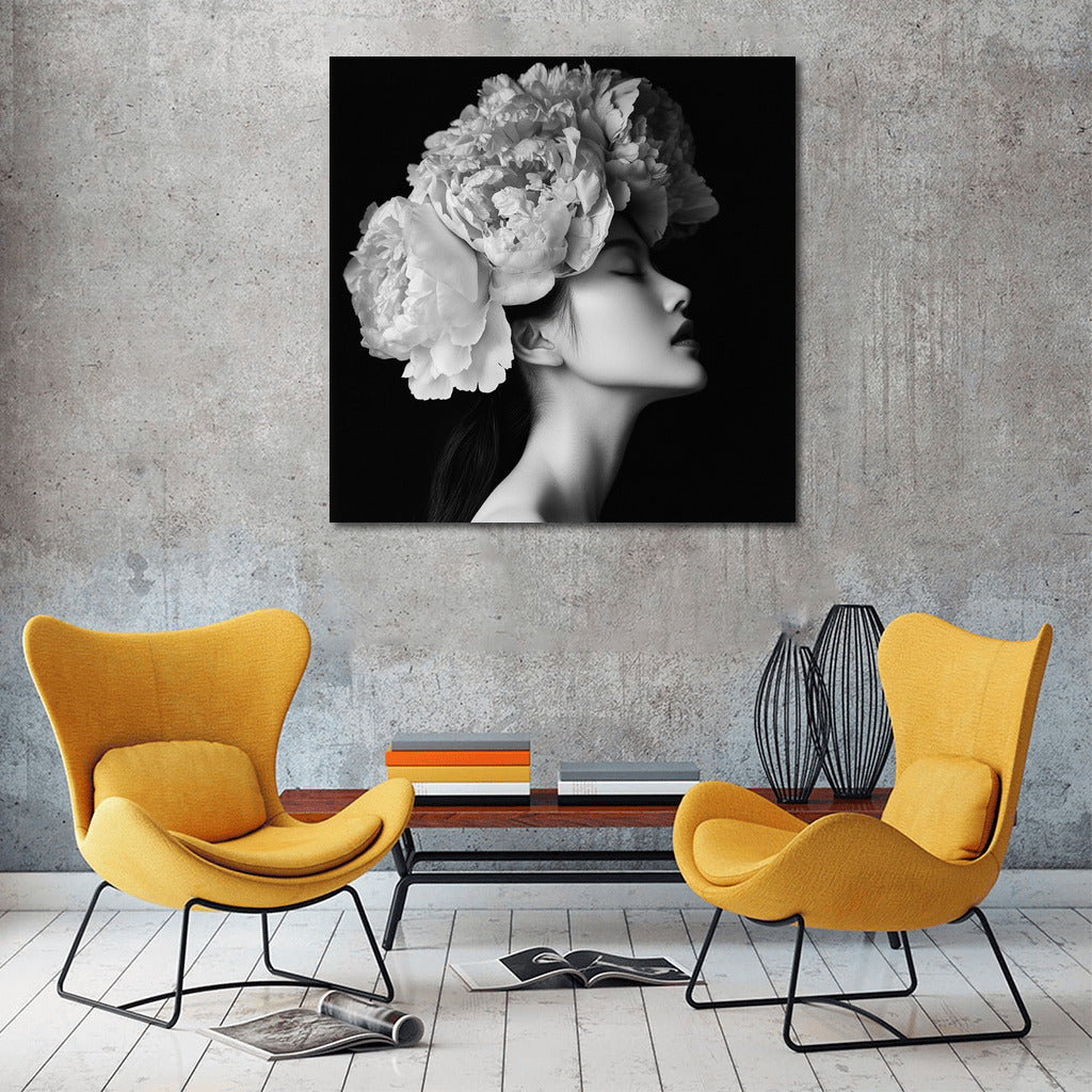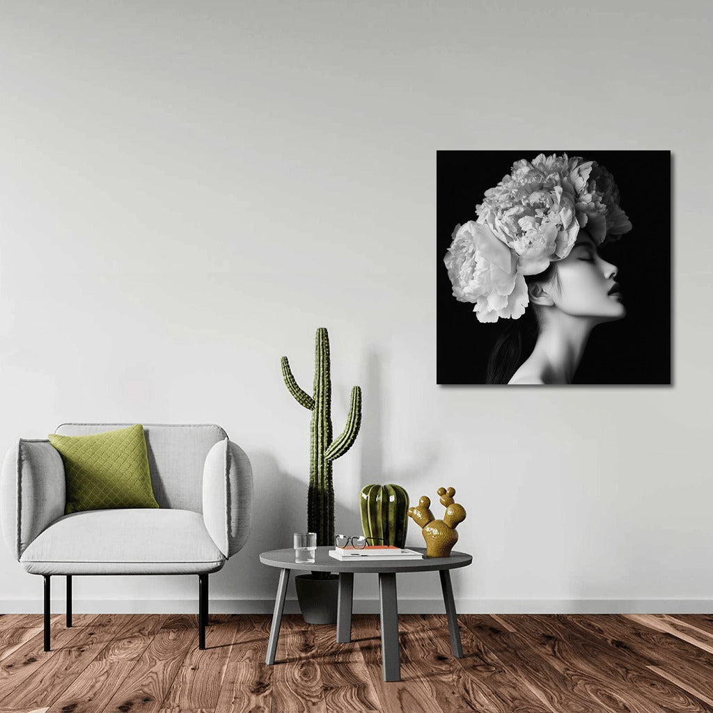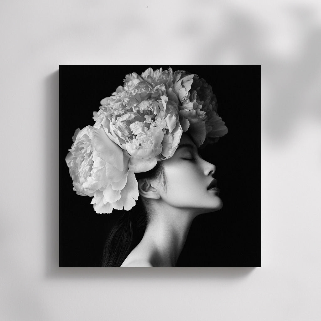 An elegant painting of a girl in a flower crown, the personification of tenderness. A perfect poster for your interior, wall art. See more from the collection: Wall Art with Women