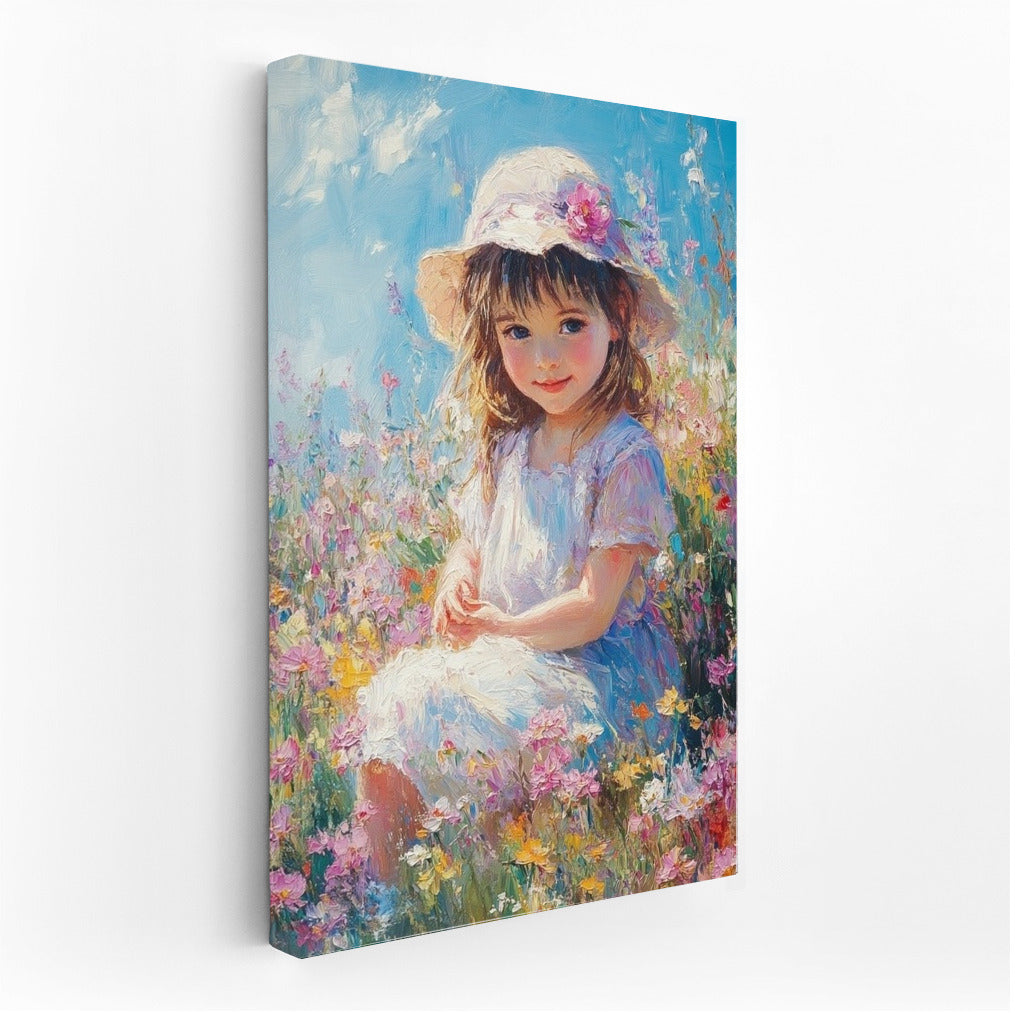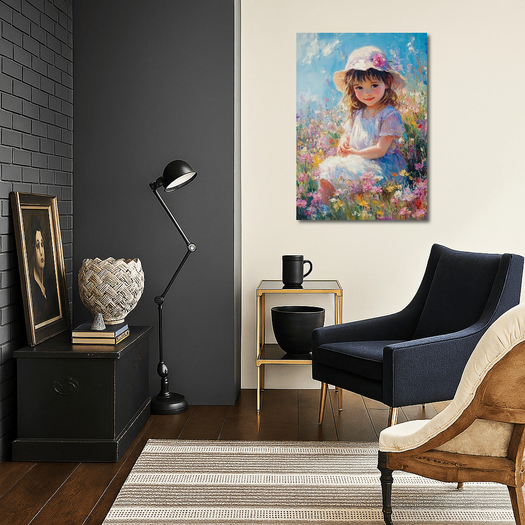 Dive into dreams with this charming poster: a gentle character among blooming fields. Art that fills the walls with tenderness. See more from the collection: Mixed Wall Art