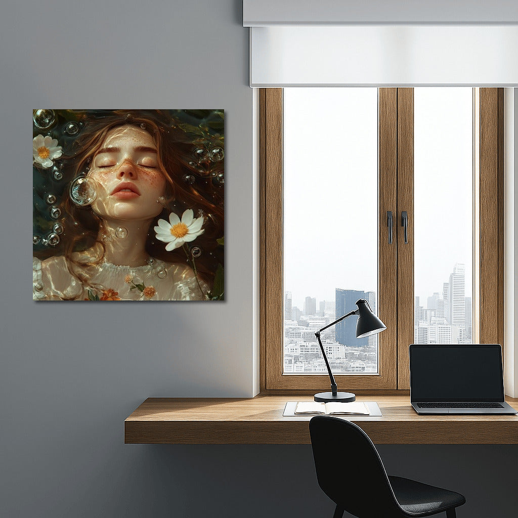 Exquisite painting: girl in a swirl of flowers. Dive into a dream world with this unique wall art. See more from the collection: Mixed Wall Art