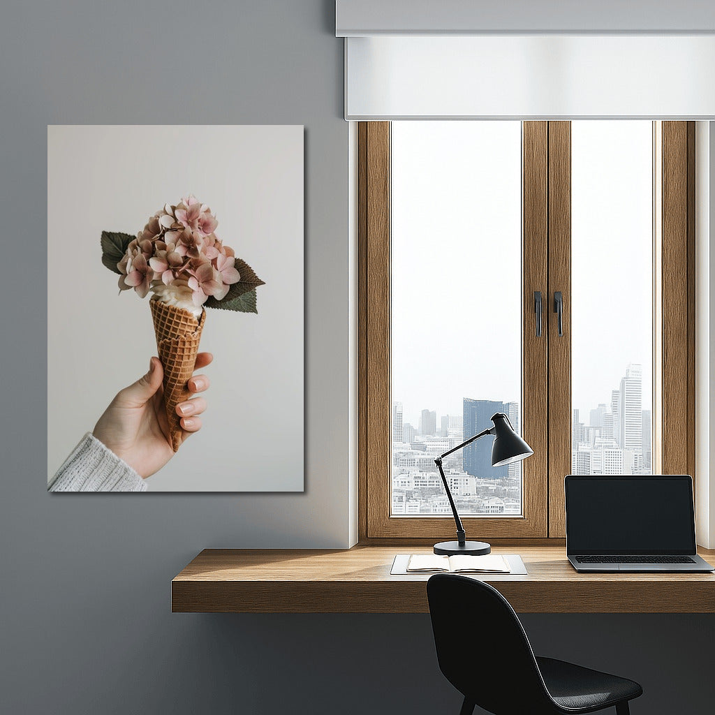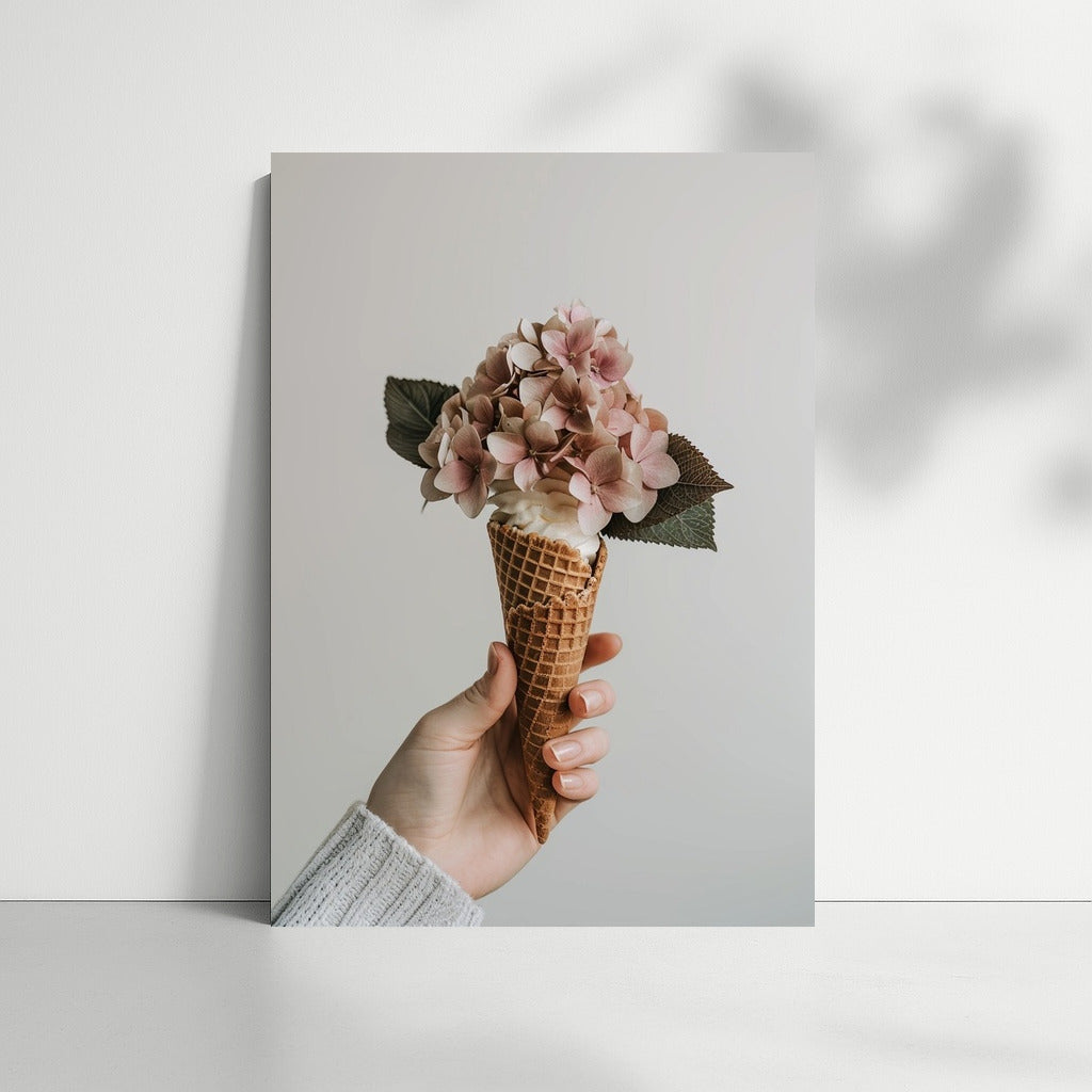 Add a fresh touch to your space with this ice cream poster with a floral accent. Perfect for creating a spring mood! See more from the collection: Flowers Art