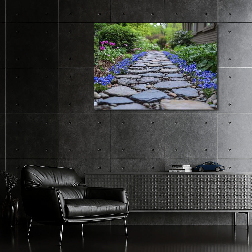 Floral symphony along the stone path. This painting will give your home the atmosphere of a garden fairy tale. Wall art. See more from the collection: Flowers Art