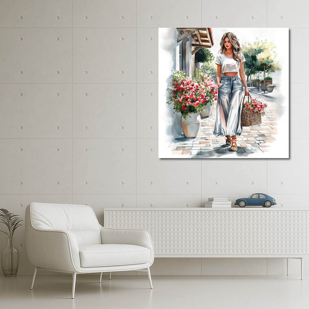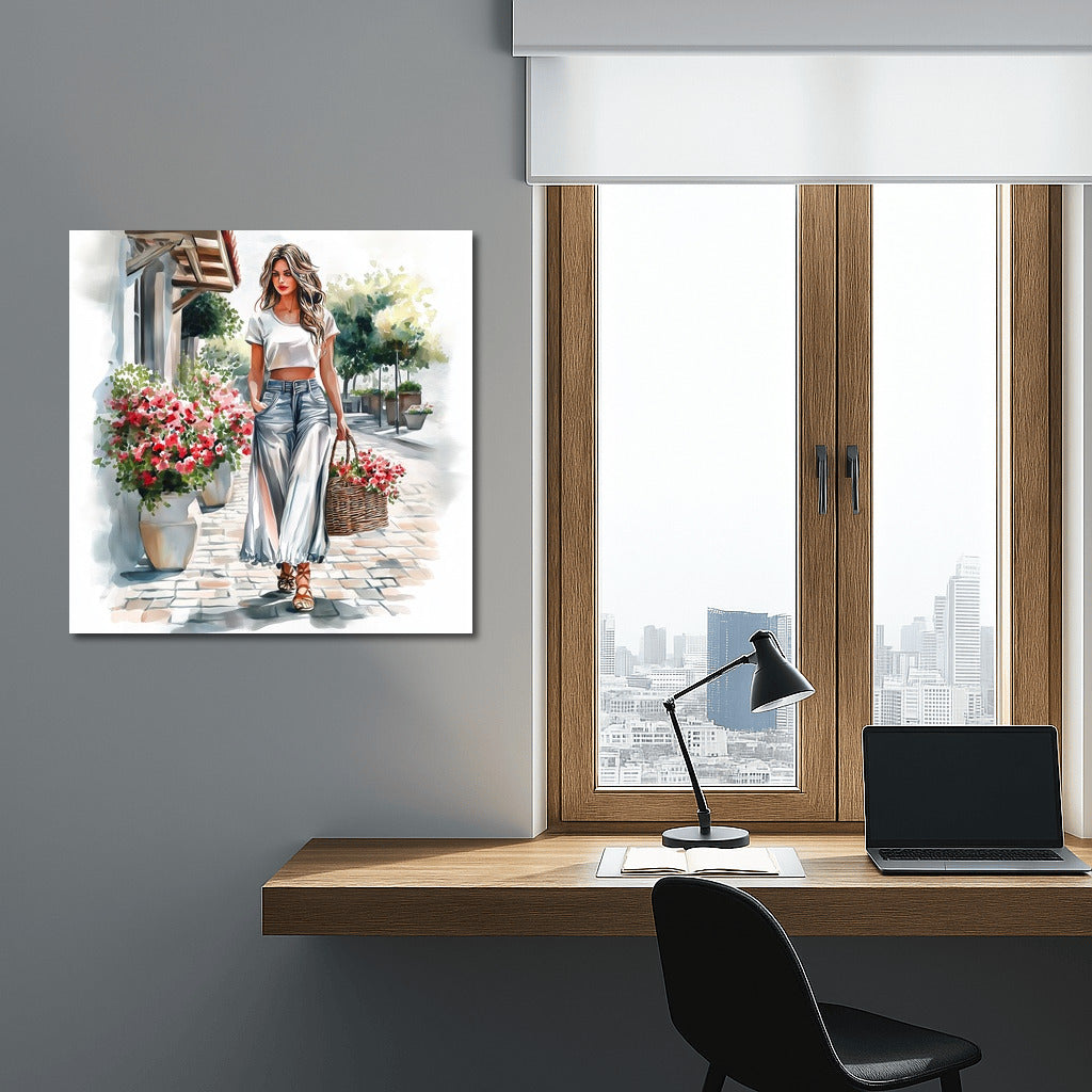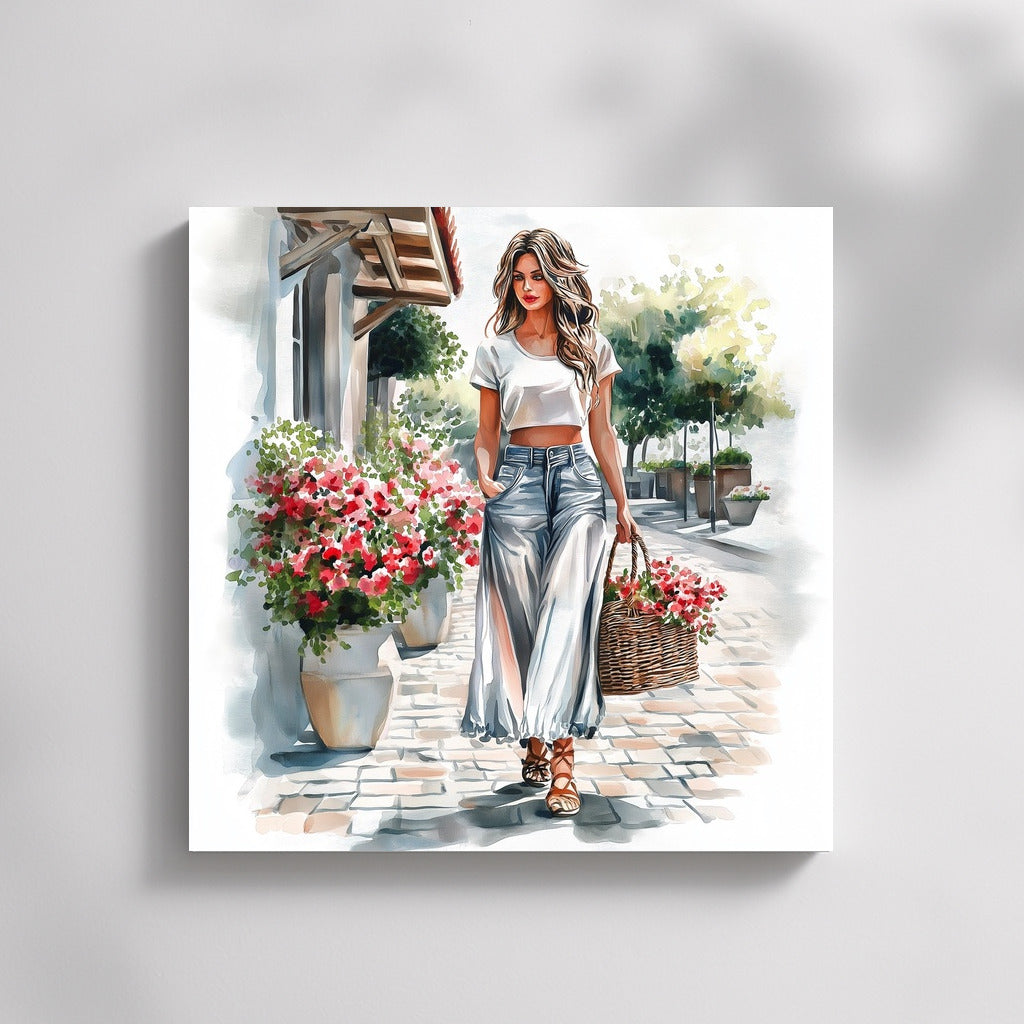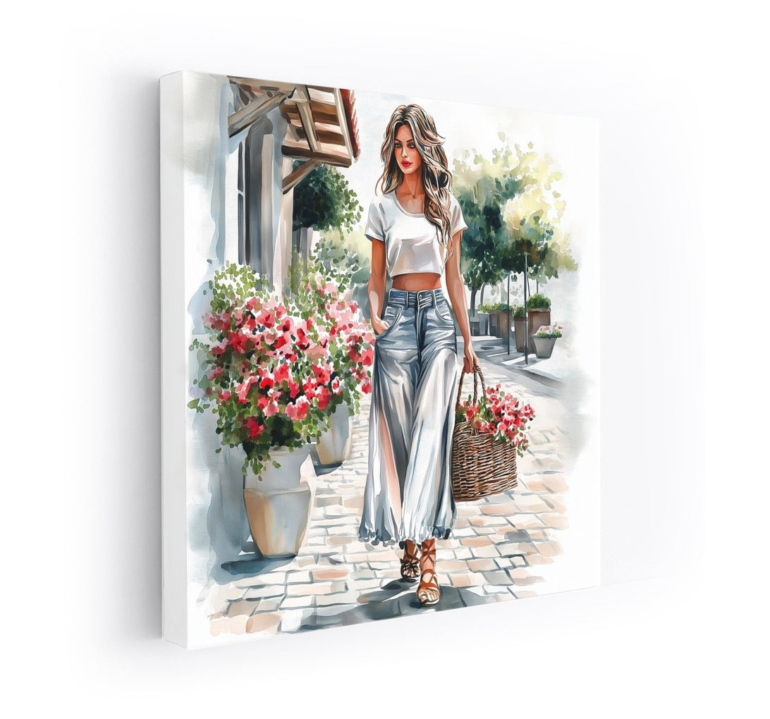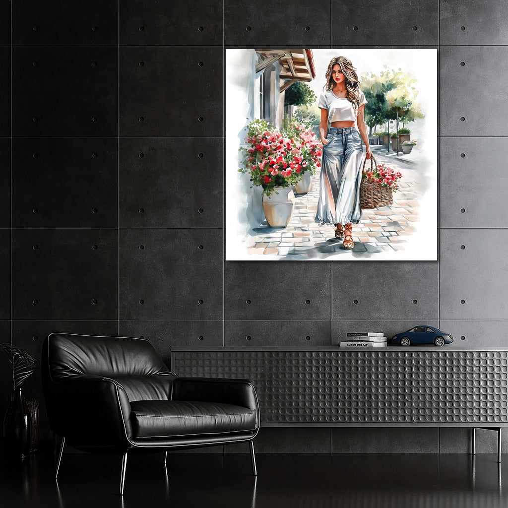 Summer day in romantic style: a girl walking among flowers. The poster will add freshness and lightness to your space. See more from the collection: Mixed Wall Art