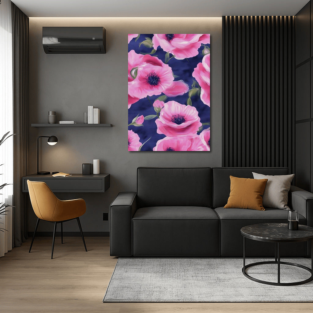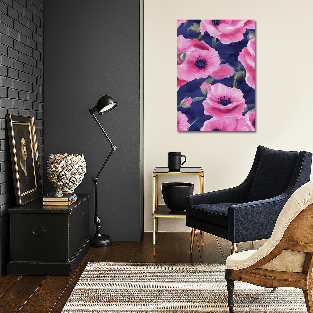Dive into a world of tenderness with this painting: pink flowers on a blue background will liven up any space. Dream wall art! See more from the collection: Flowers Art
