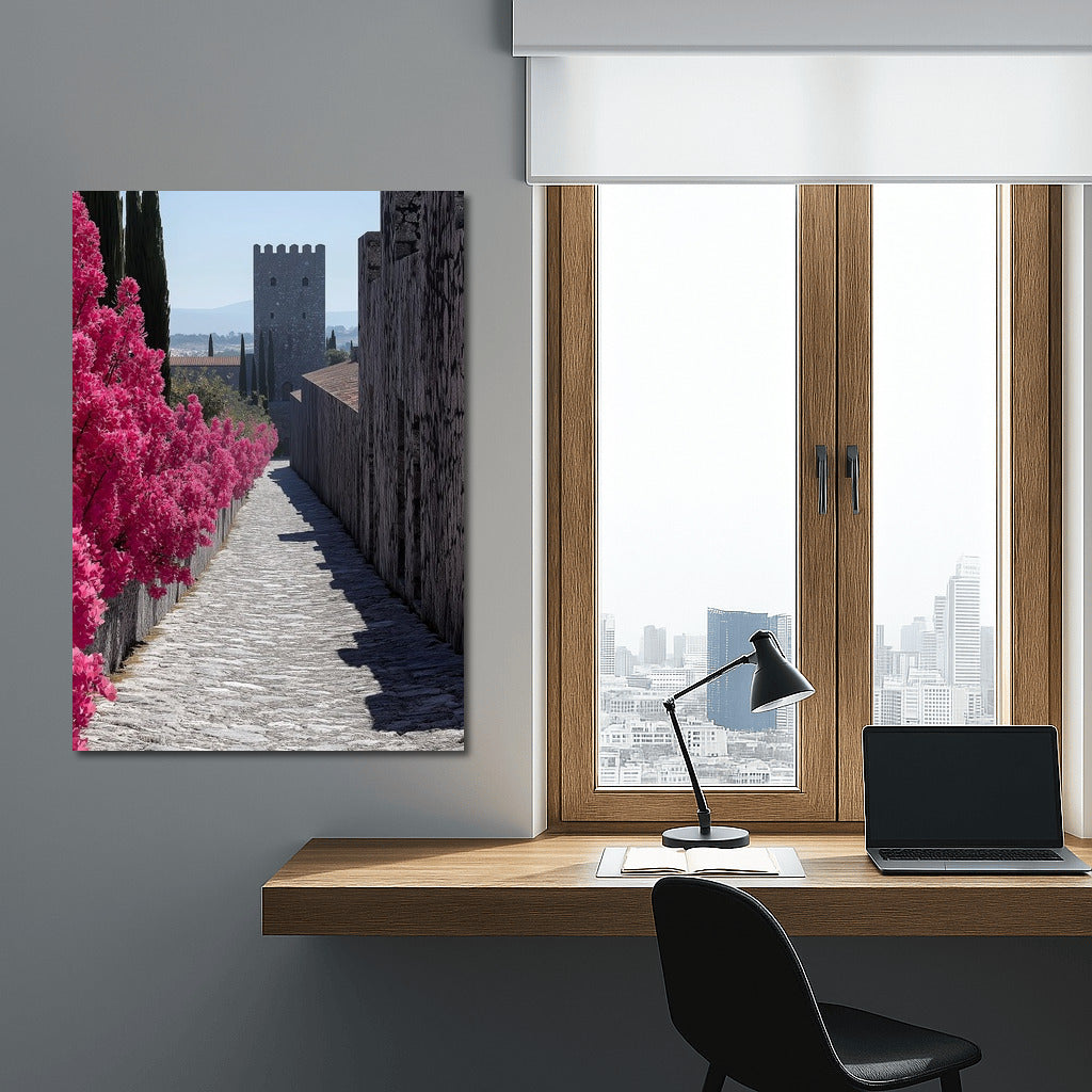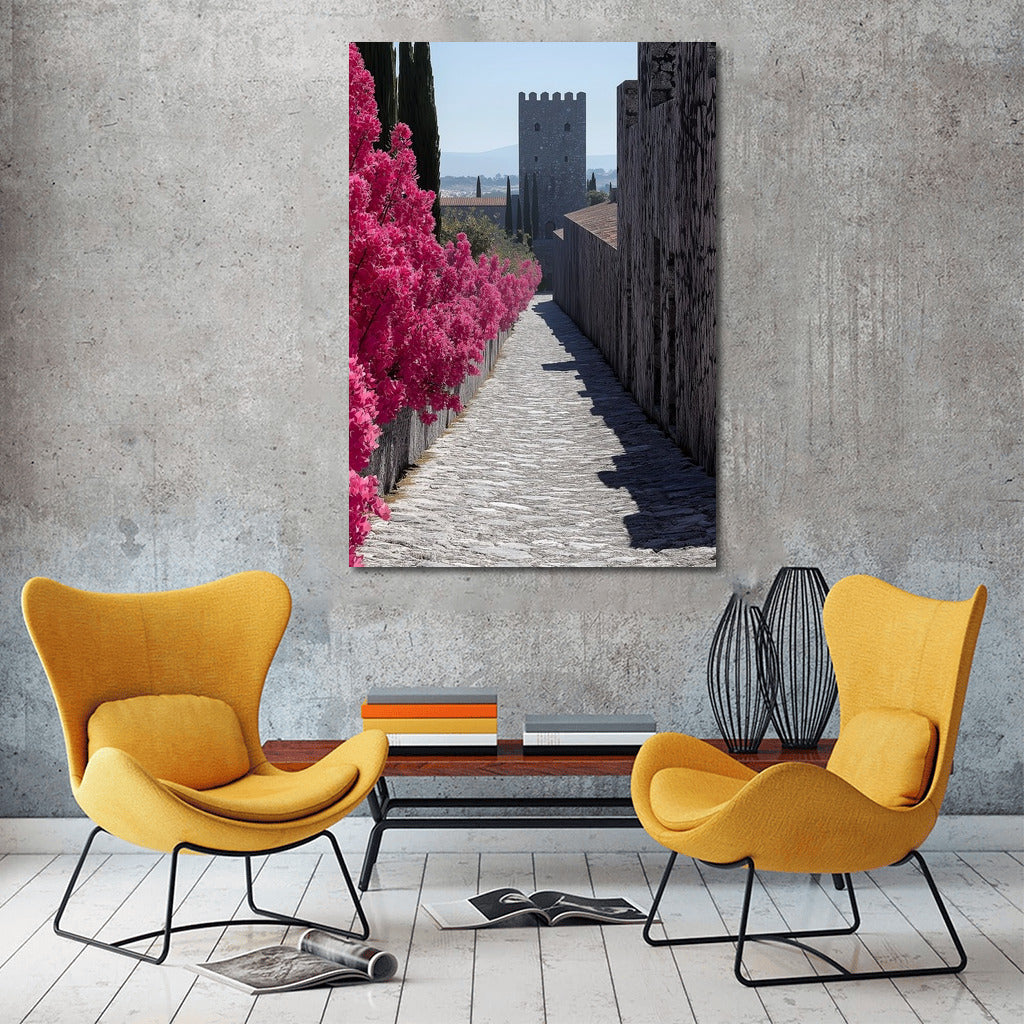 paintingsque poster: A medieval castle and vibrant flowers create dreamy wall art that evokes fantasy. See more from the collection: Mixed Wall Art