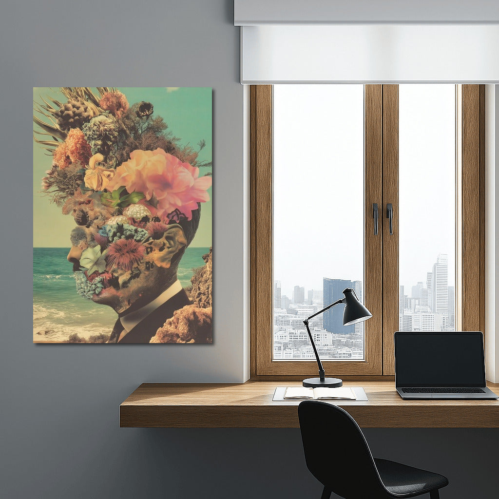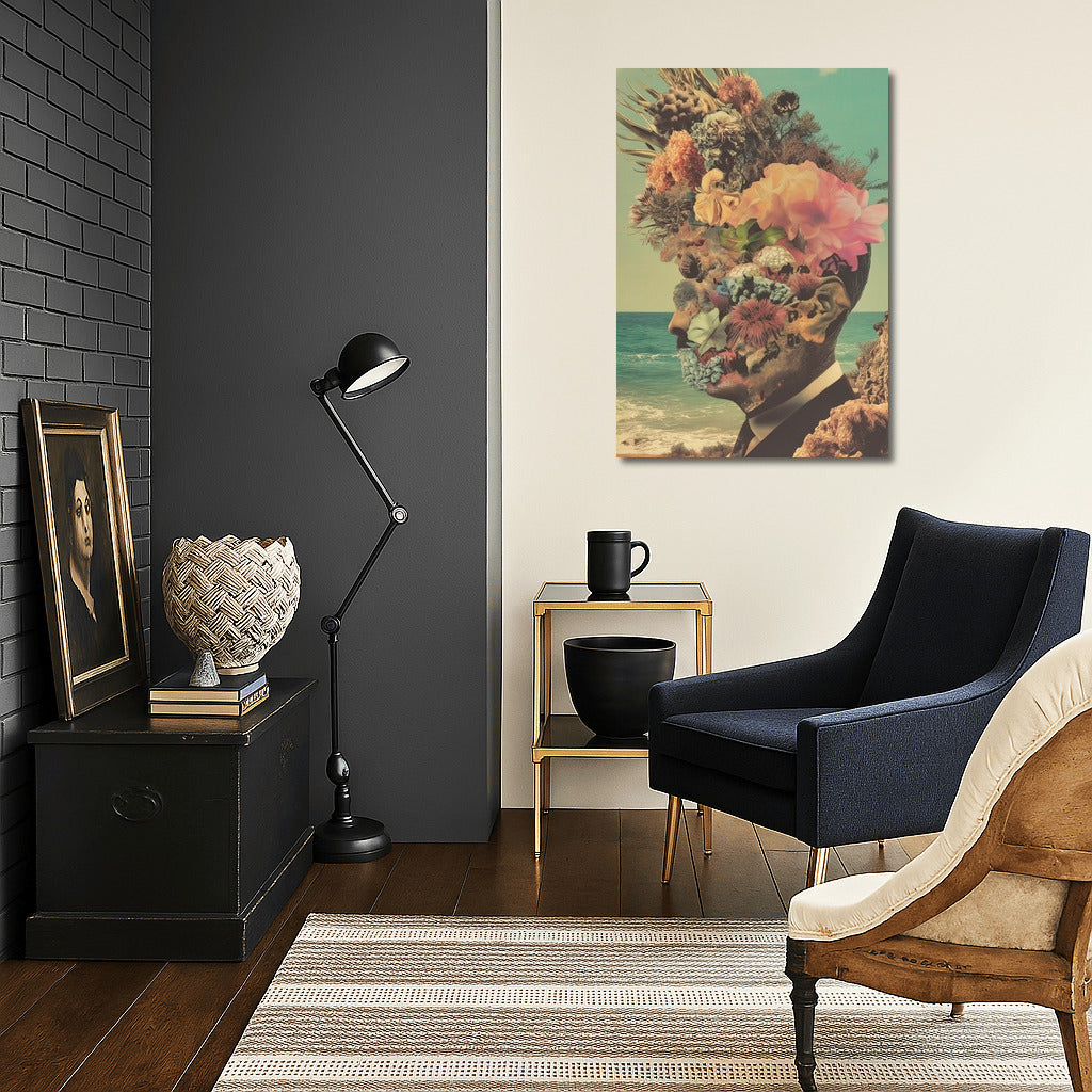 A vibrant poster with a fantasy portrait: flowers and nature intertwine to create a unique wall art. Impressive and unusual! See more from the collection: Mixed Wall Art