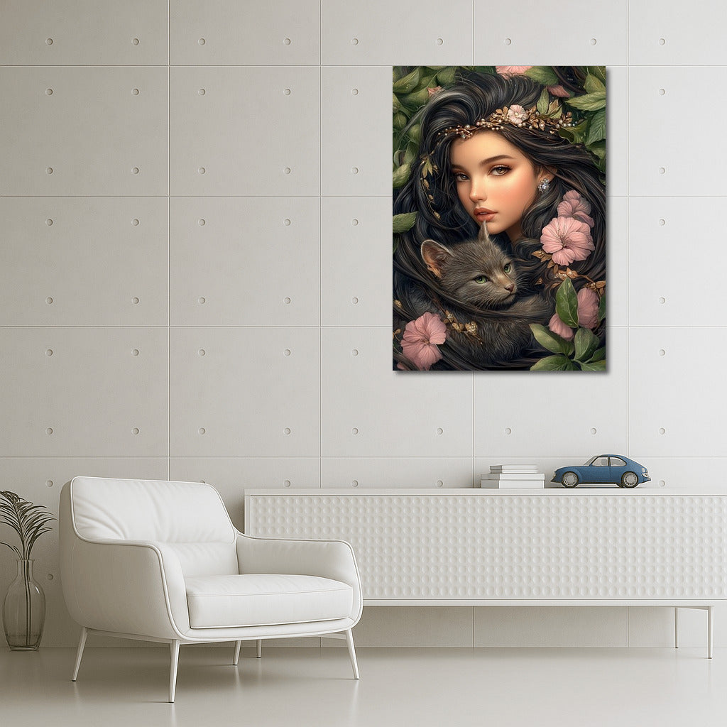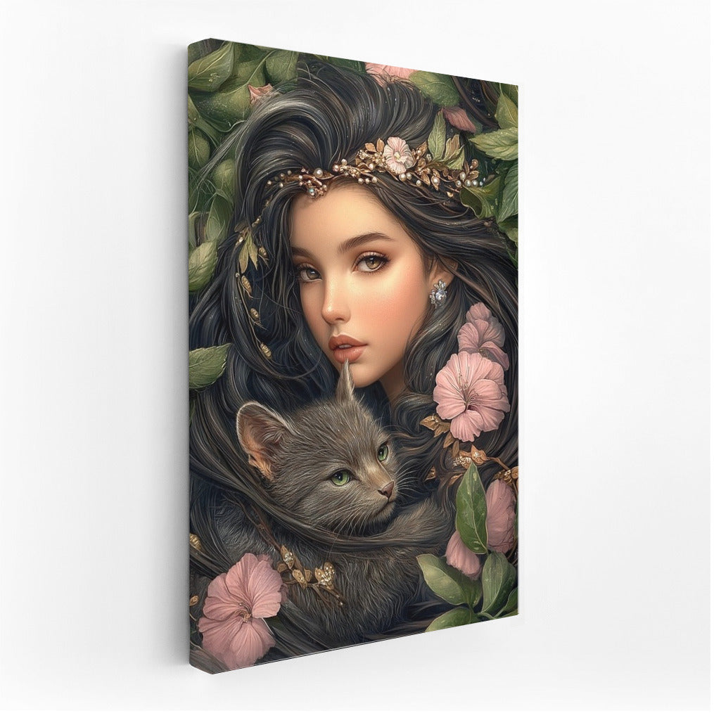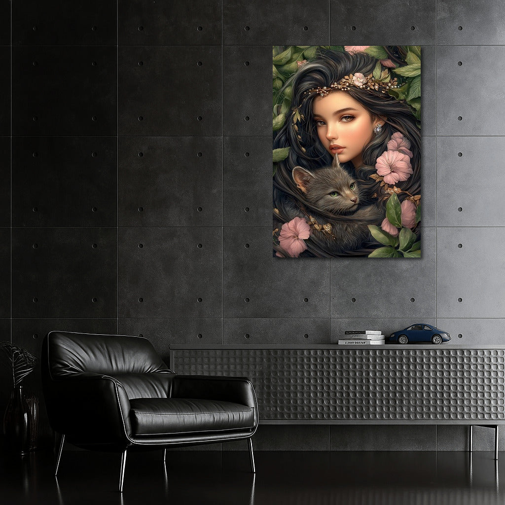 Charming and tender: this painting with flowers and a cat will add magic to your interior. Perfect wall art! See more from the collection: Animals Art