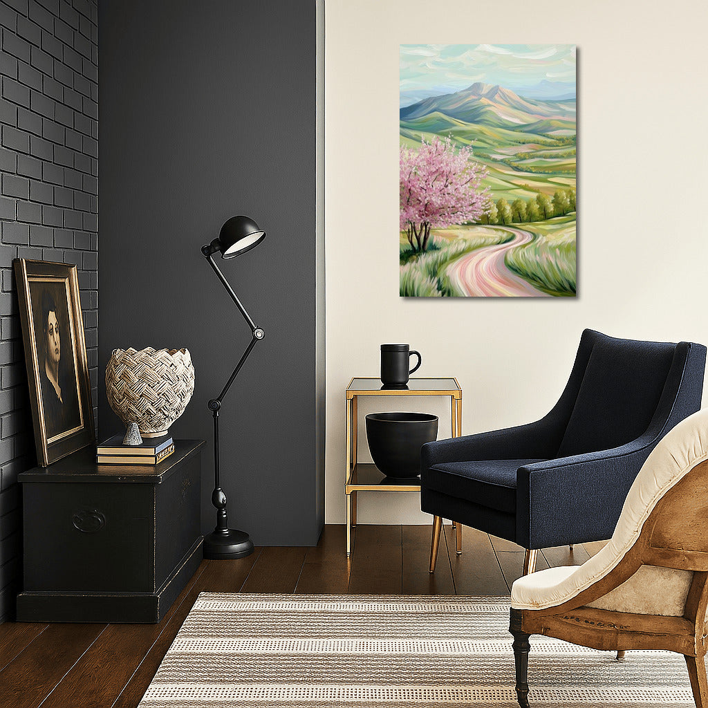 A captivating poster of gentle rolling hills and blooming trees. Wall art that brings nature to life in your home. See more from the collection: Mixed Wall Art
