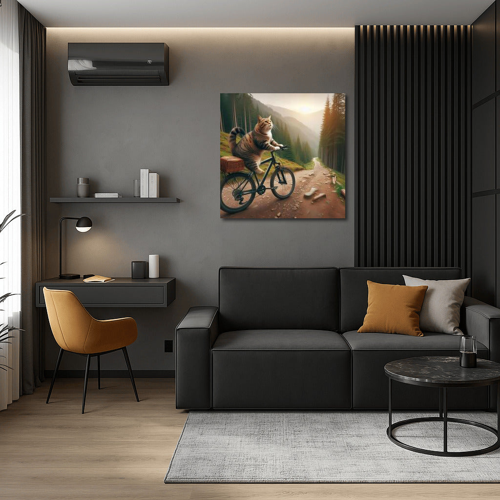 Fluffy Traveler: A Cat on a Bicycle Conquers Mountain Trails. Dynamic Wall Art for Inspiration and Comfort! See more from the collection: Animals Art