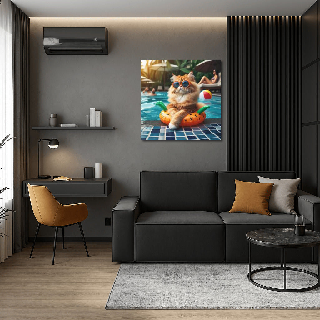 Fluffy King of the Pool Party: Feline Grace in Vibrant Colors Wall Art