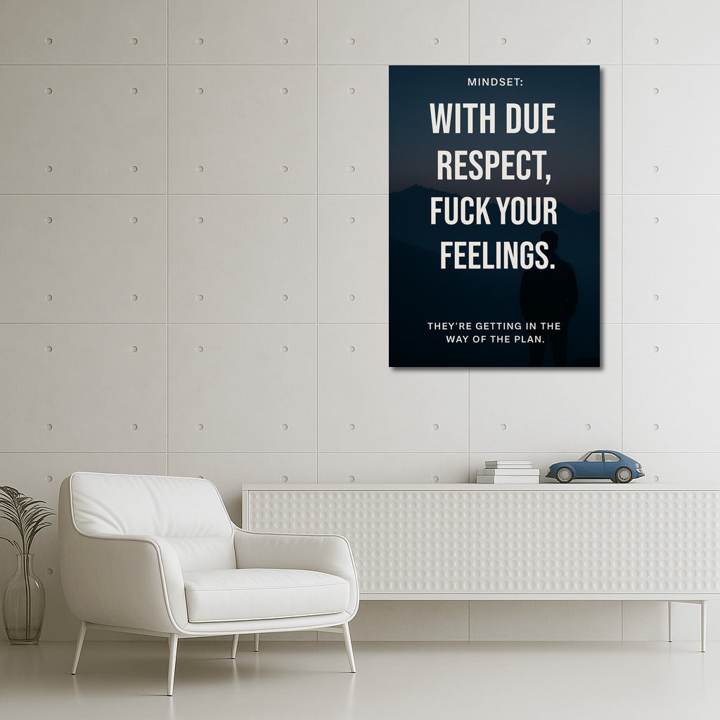 This painting is a reminder of focus and discipline. The poster calls out: With respect, feelings interfere with the plan. See more from the collection: Dreams & Vision Quotes Art