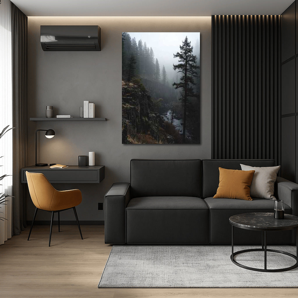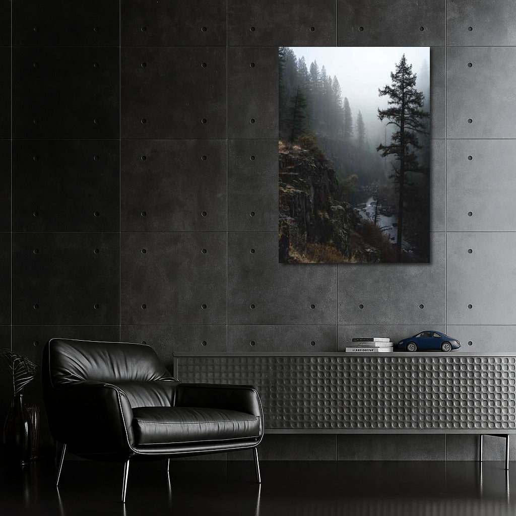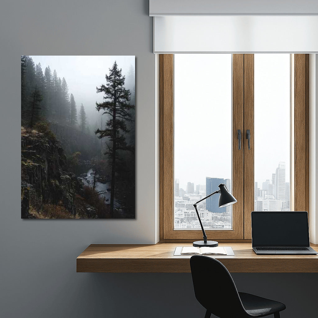 Foggy morning in the Oregon woods: invite a piece of the American wilderness into your home with this atmospheric painting. Wall art. See more from the collection: Country Art