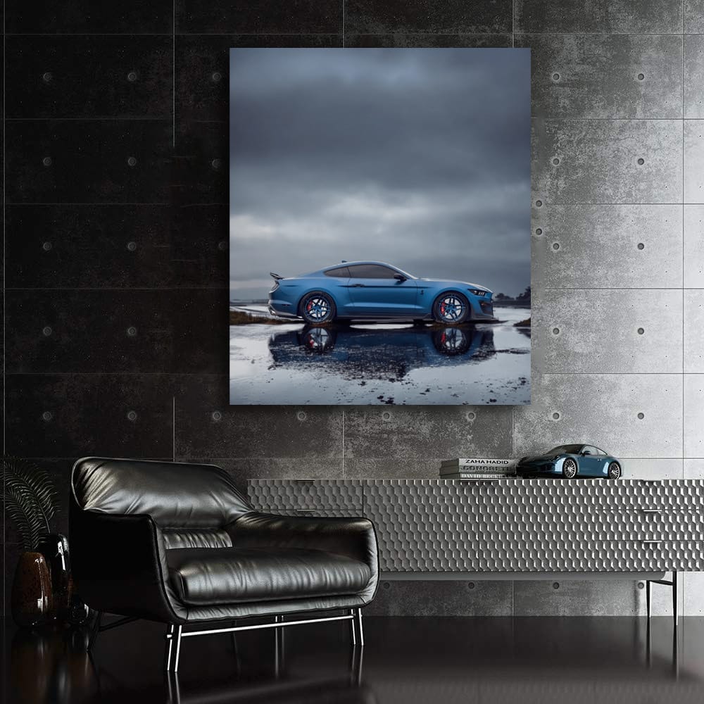 This painting is like a wild mustang breaking out of the fog. Wall art for true speed lovers. The poster Mustang%20in%20the%20fog%20-%202_lDAD.jpg is a vivid reminder of freedom and adrenaline. Just like the roar of an engine in the night. See more from the collection: Ford Art