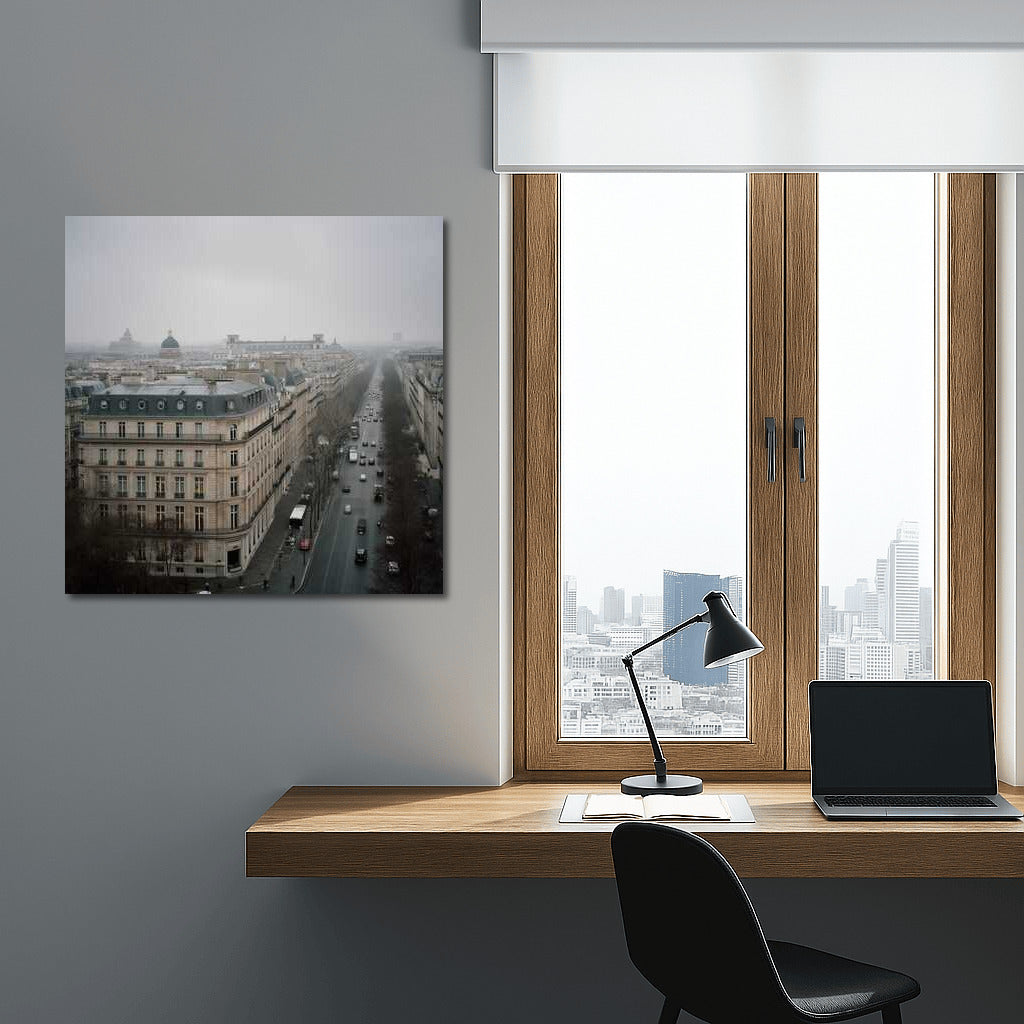 Foggy Paris comes alive in this poster. Classic wall art that embodies the atmosphere of France. See more from the collection: Country Art