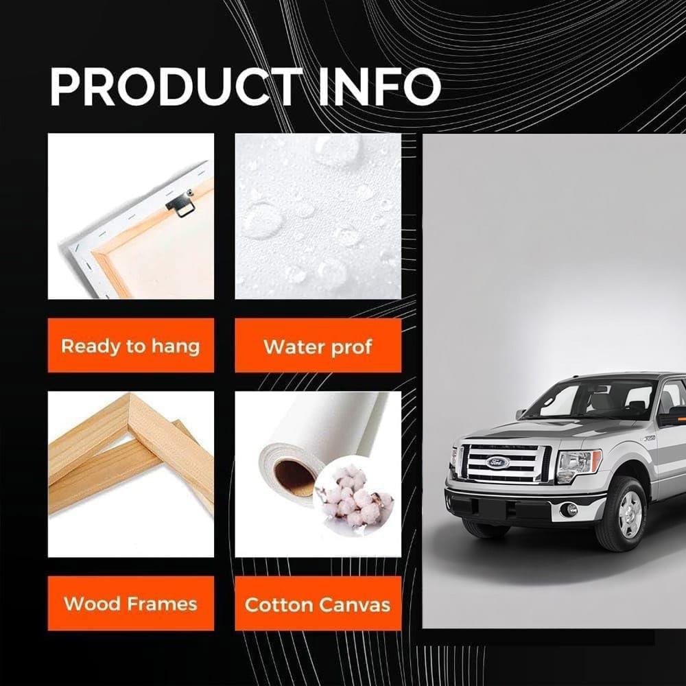 This painting is like a top poster for real Ford fans. Wall art, where F-Series on a gray background looks like the king of the road. This art is like fresh gasoline in the veins, it will be just right on the garage wall. A real must-have for the guys! See more from the collection: Ford Art