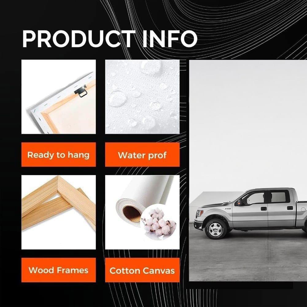 This poster is a blast for car fans! Ford F-Series parked in "I'm the boss" style is ready to tear down boring walls. This wall art is a challenge to everyone who doesn't understand what real drive and power on wheels is. See more from the collection: Ford Art