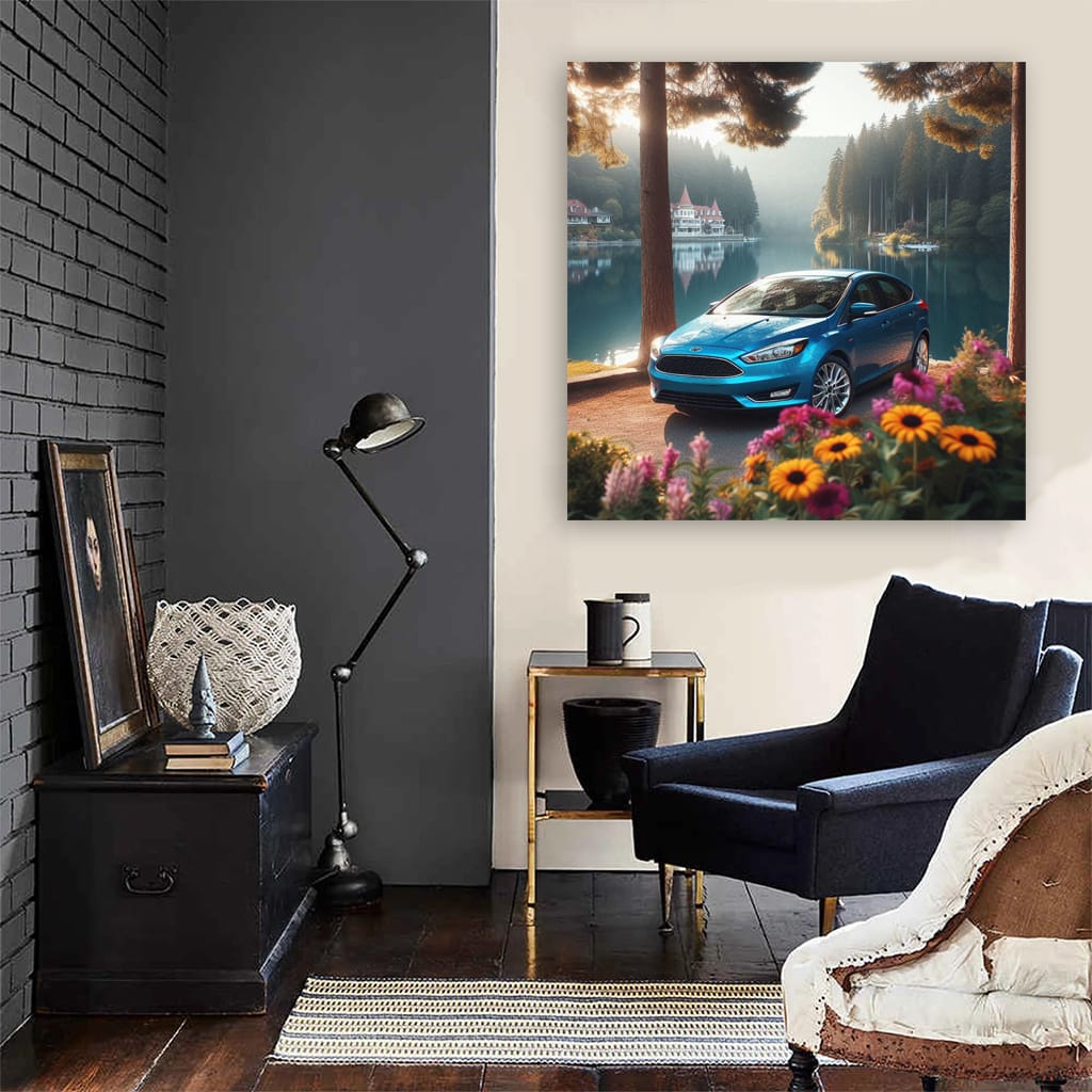 Ford Focus by Lake - Sleek and Stylish Ride Wall Art