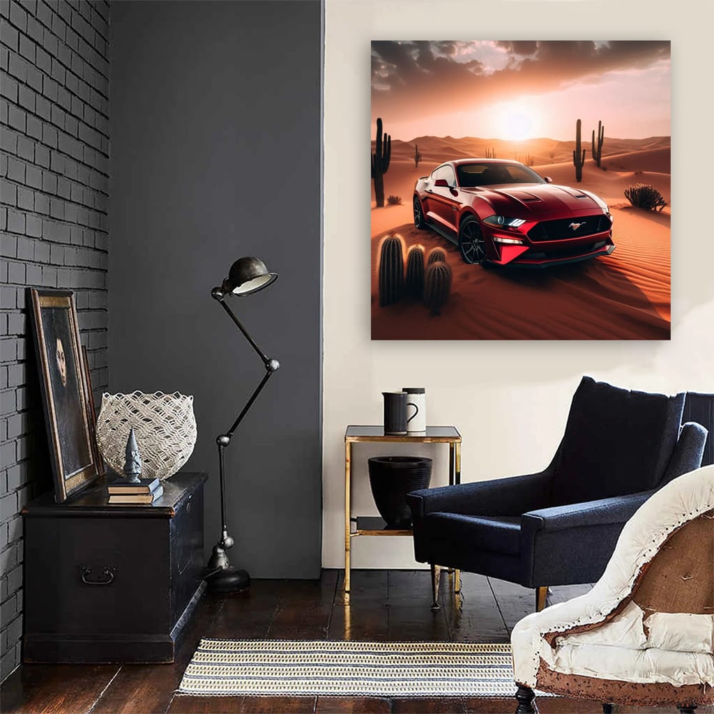 Ford Mustang GT in Desert - Power and Elegance in Motion Wall Art