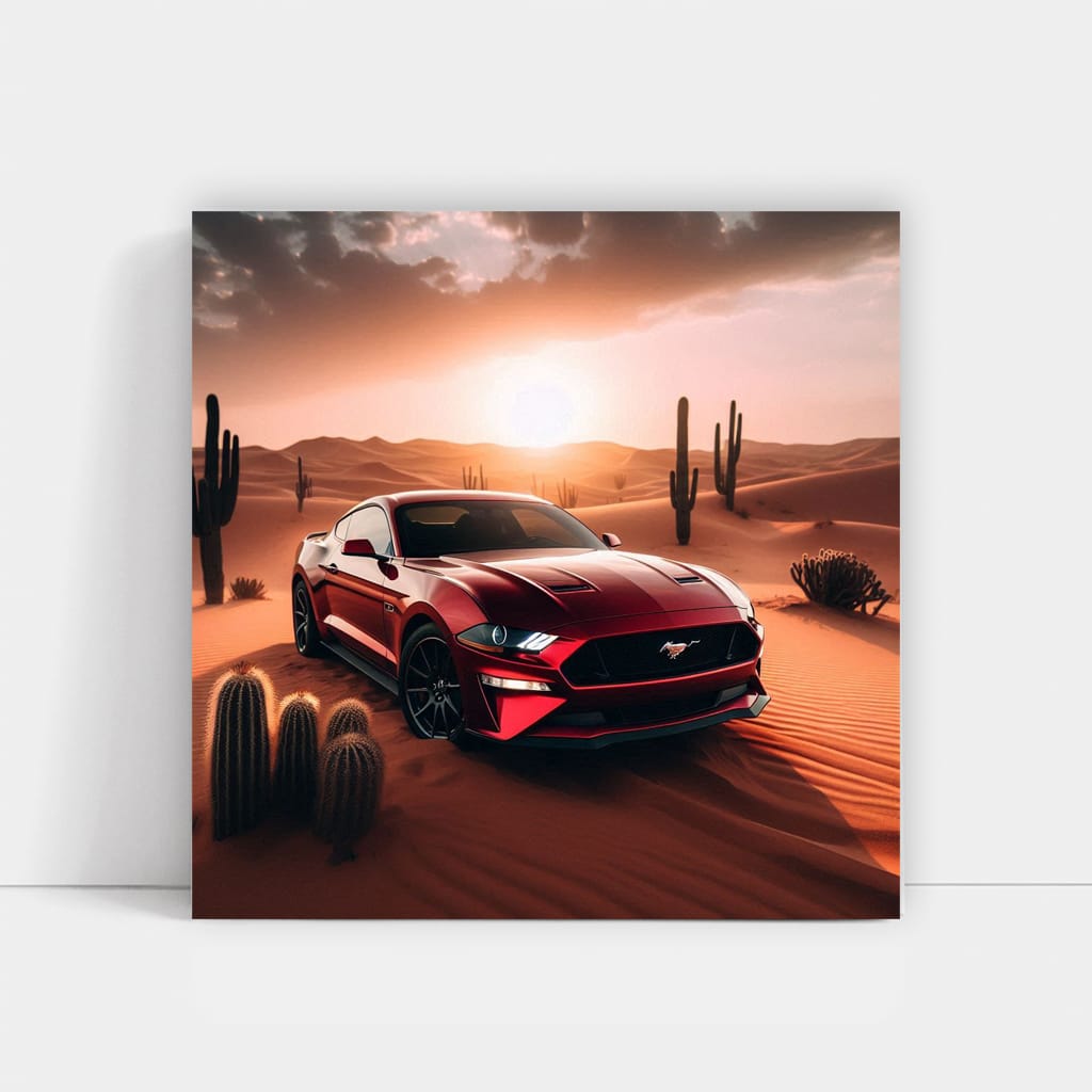 Bro, this poster is the bomb! Ford is racing through the desert like it doesn't give a damn. The stylish "Mustang GT" in this painting is pure adrenaline for car fans. Wall art that will make your heart beat faster. A dream in a frame for those who love speed. See more from the collection: Ford Art