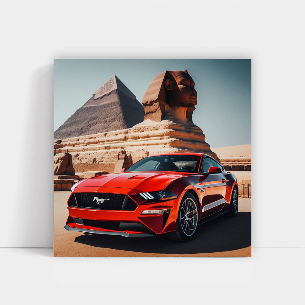 This painting is a real adrenaline rush for car lovers. The poster with Ford Mustang GT against the background of Egyptian sands is not just wall art, but a challenge to speed and power. Hang it on the wall and feel the roar of the engine in your room. See more from the collection: Ford Art