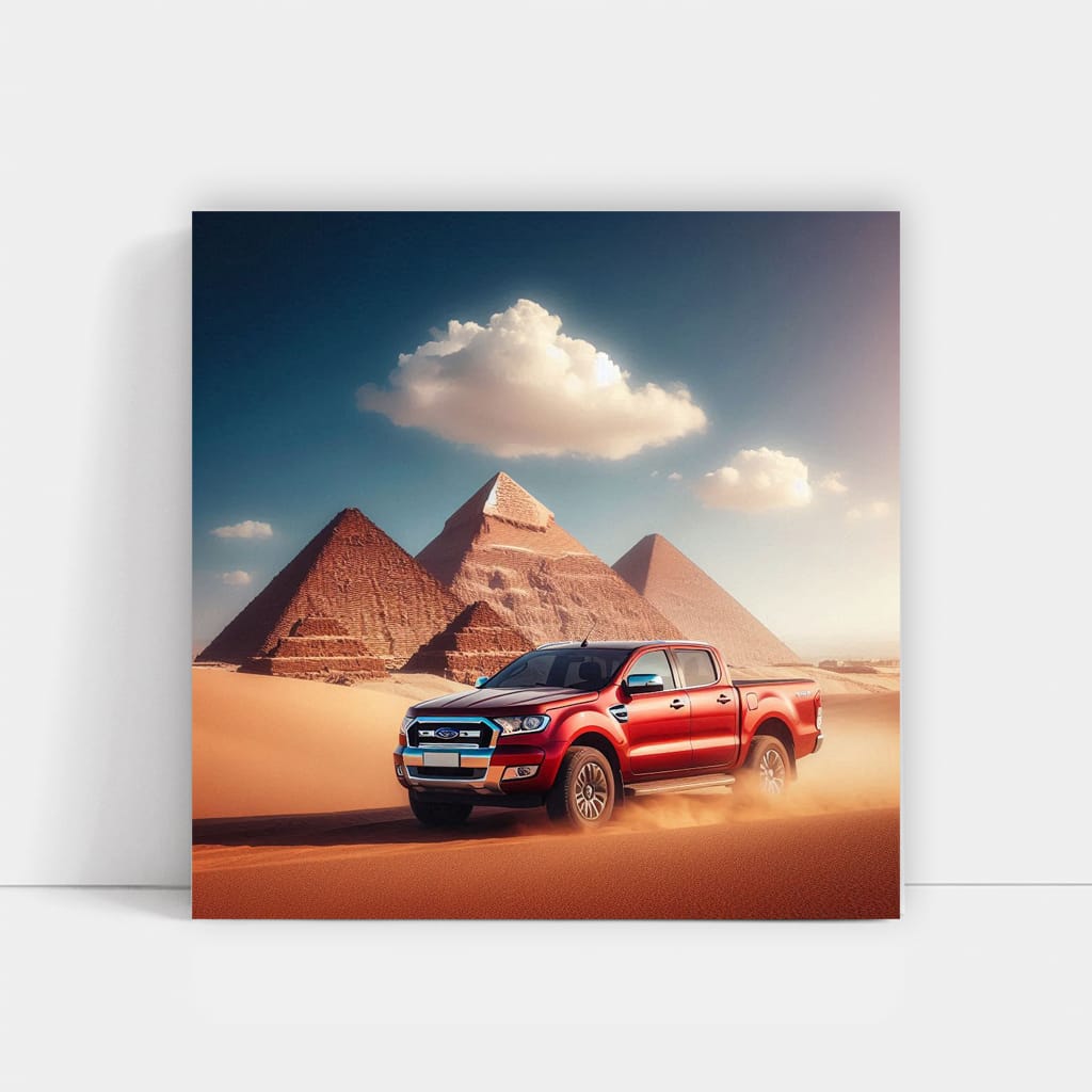 This painting is like a souped-up Ford Ranger in the most epic style. Wall art depicting this beast gives you energy and drive, as if you are racing through the sands of Egypt. This is not just a poster, it is a challenge for all car fans. See more from the collection: Ford Art