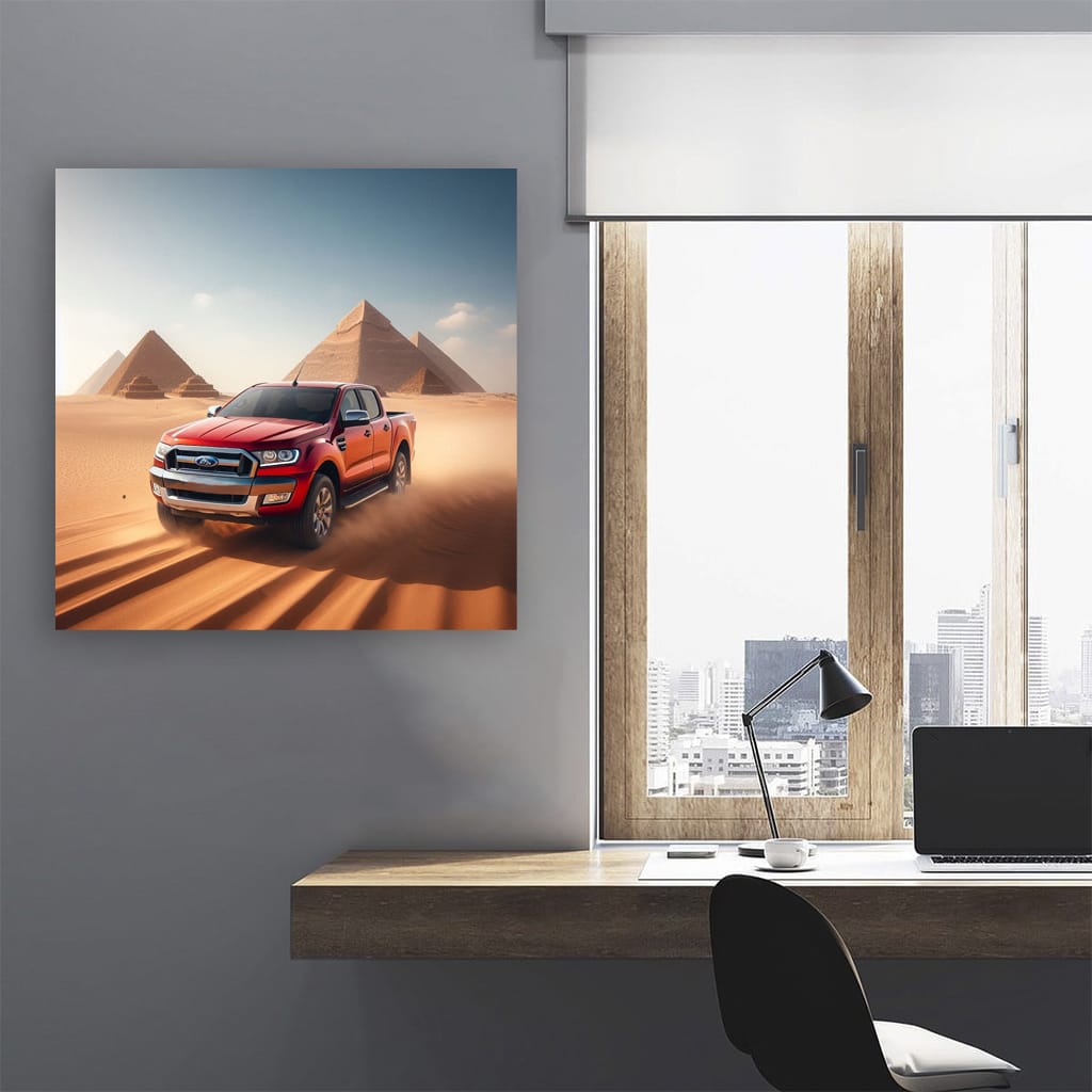 This painting is a real find for a car lover. A photo of an Egyptian-style Ford Ranger framed in a bold poster will be the perfect decoration for your wall. This wall art immediately attracts attention and makes everyone who knows cars jealous. See more from the collection: Ford Art