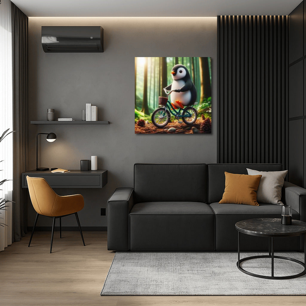Forest Adventure: Penguin on a Bike Wall Art